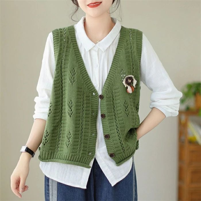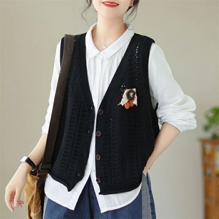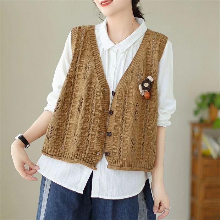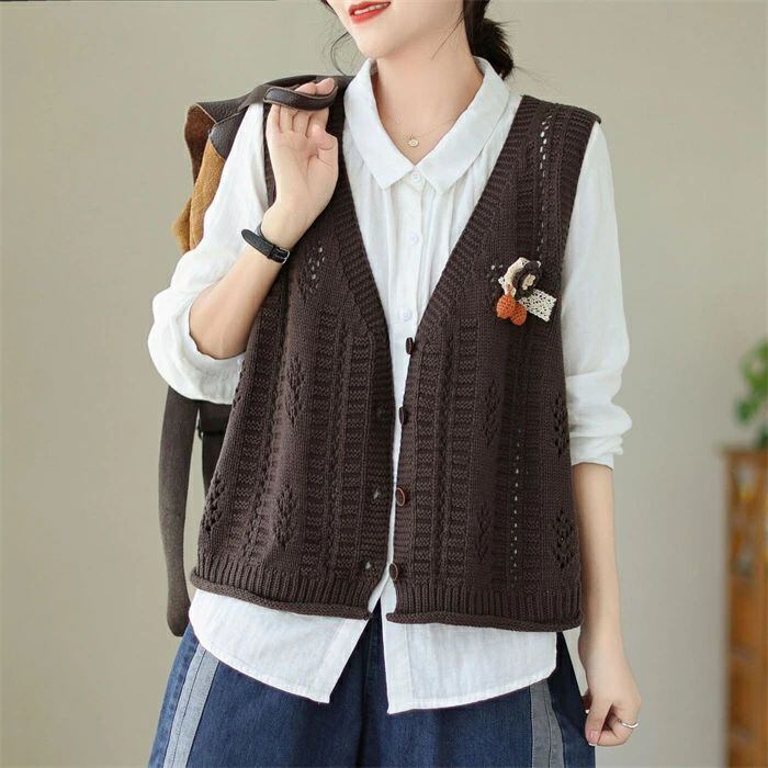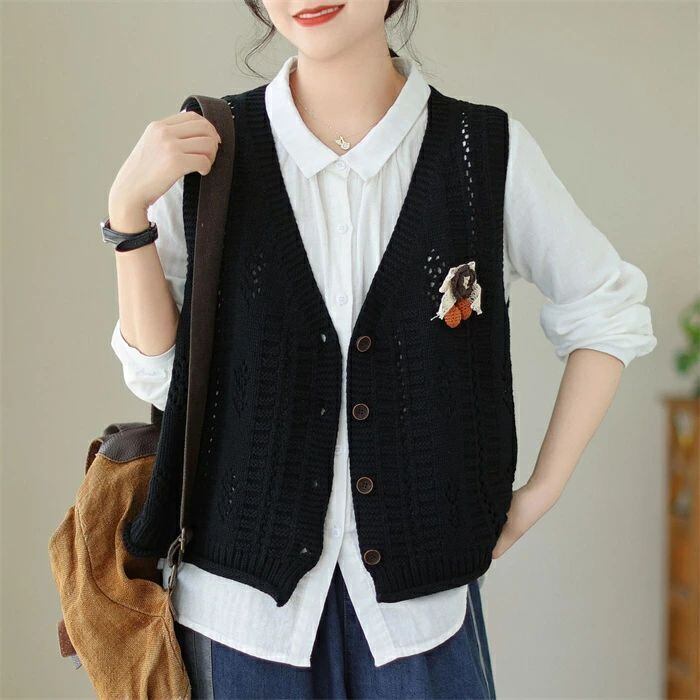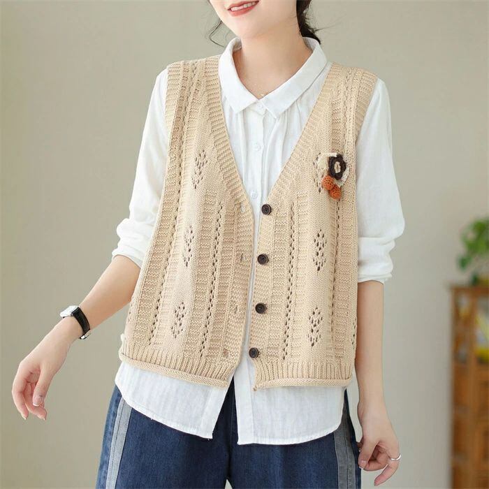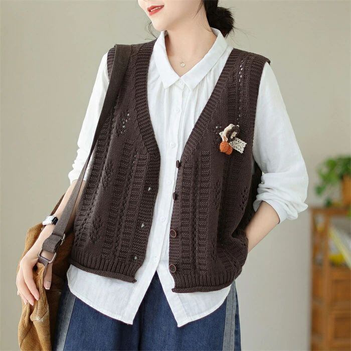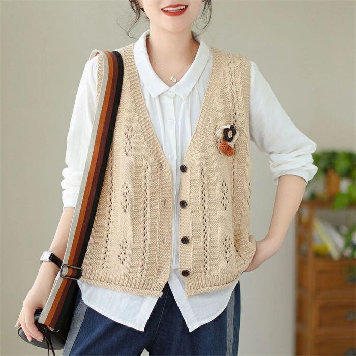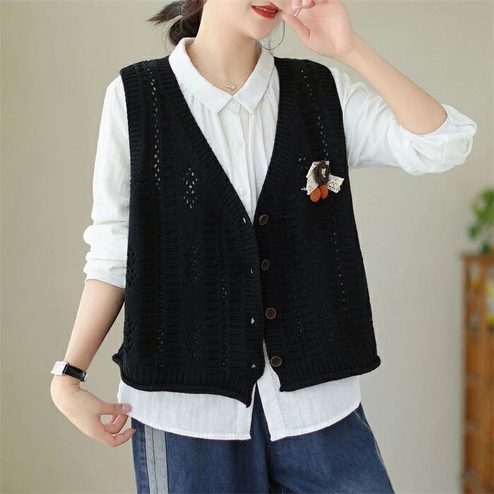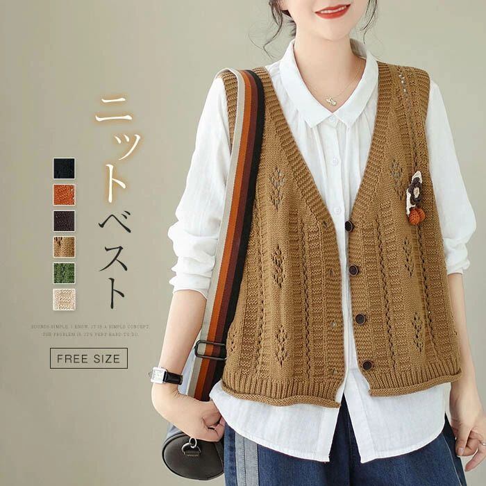 ニットベスト ニット レディース 春 秋 ベスト カーディガン ニットカーディガン ノースリーブ 袖なし Vネック 前開き 羽織り カーデ ニットカーデ カットソー トップス ゆったり 森ガール 体型カバー カジュアル シンプル ルームウェア お出かけ 普段着 お洒落