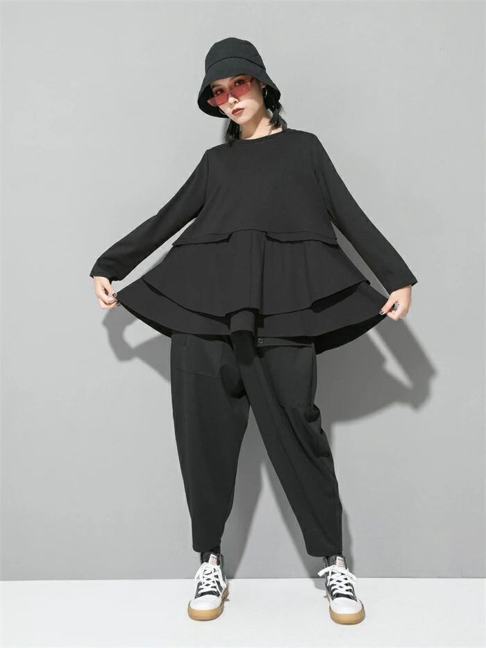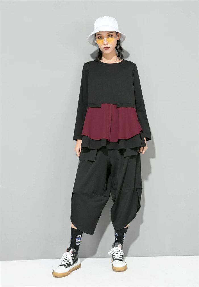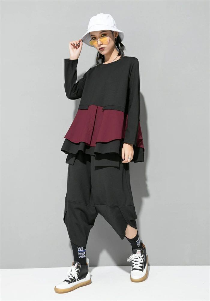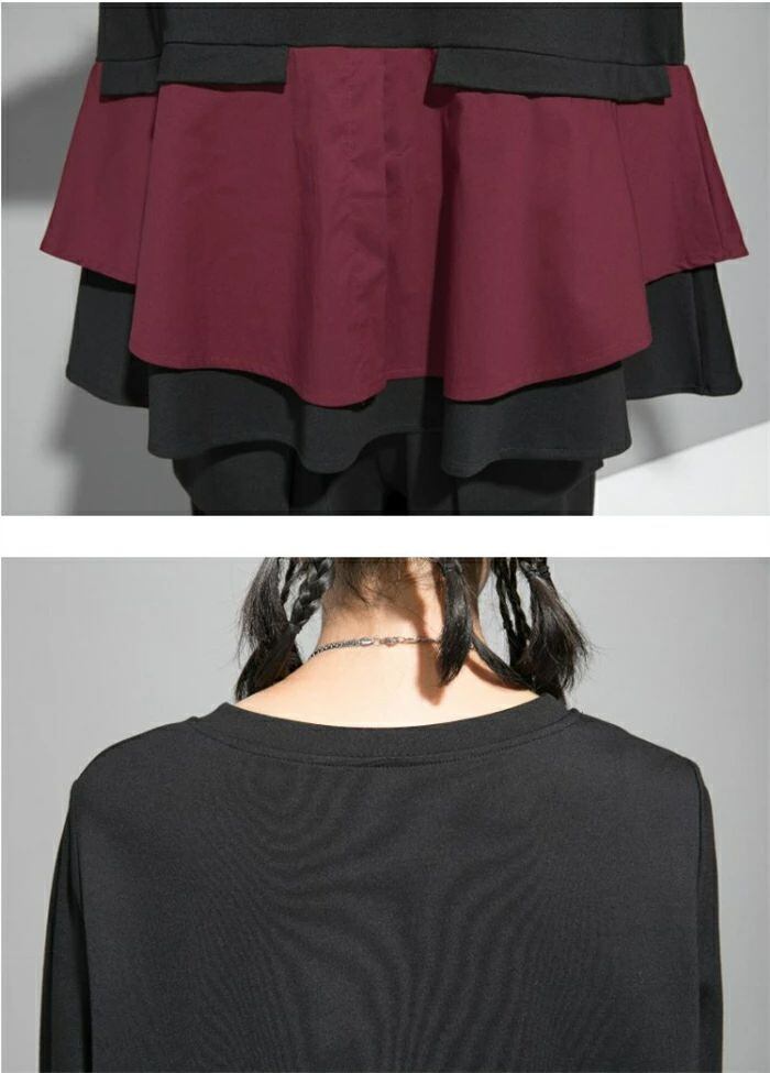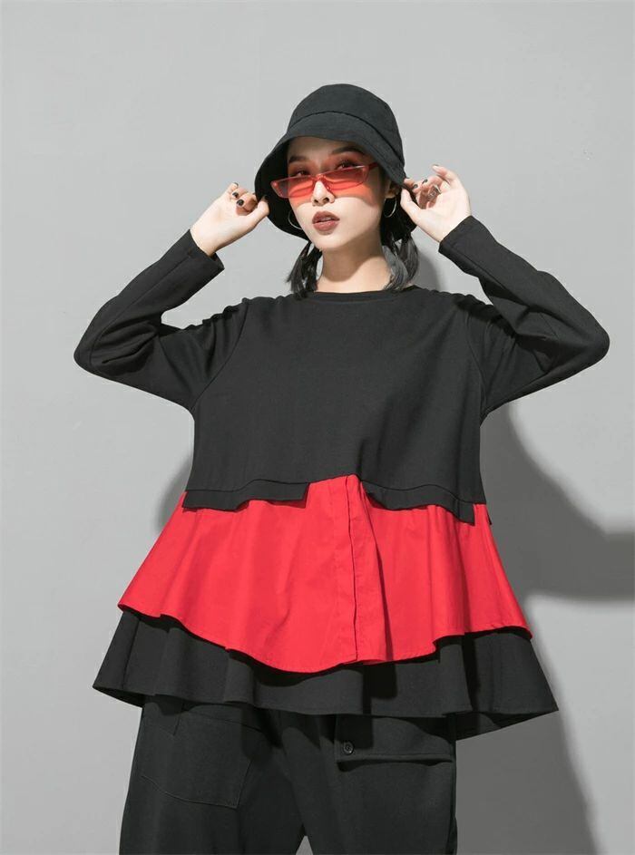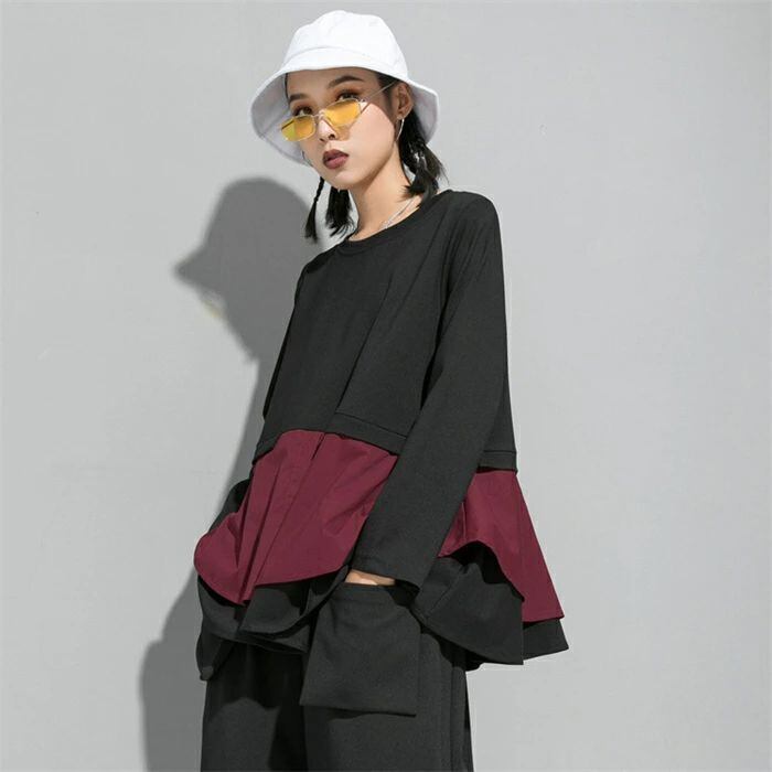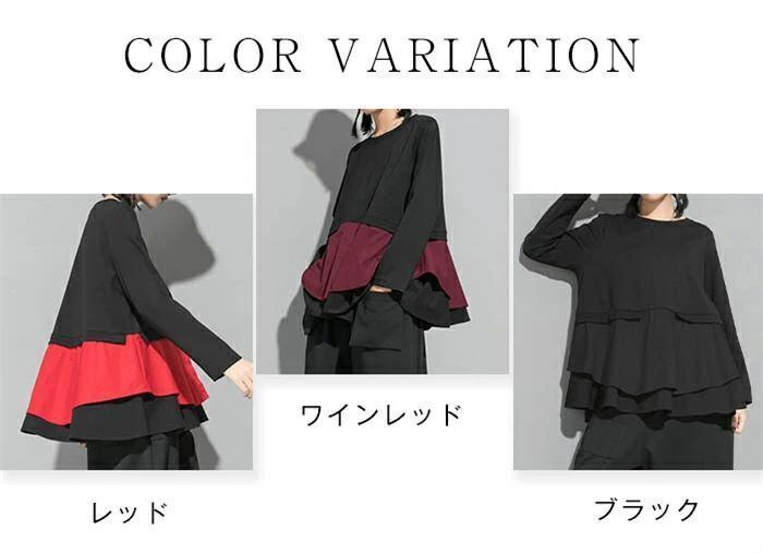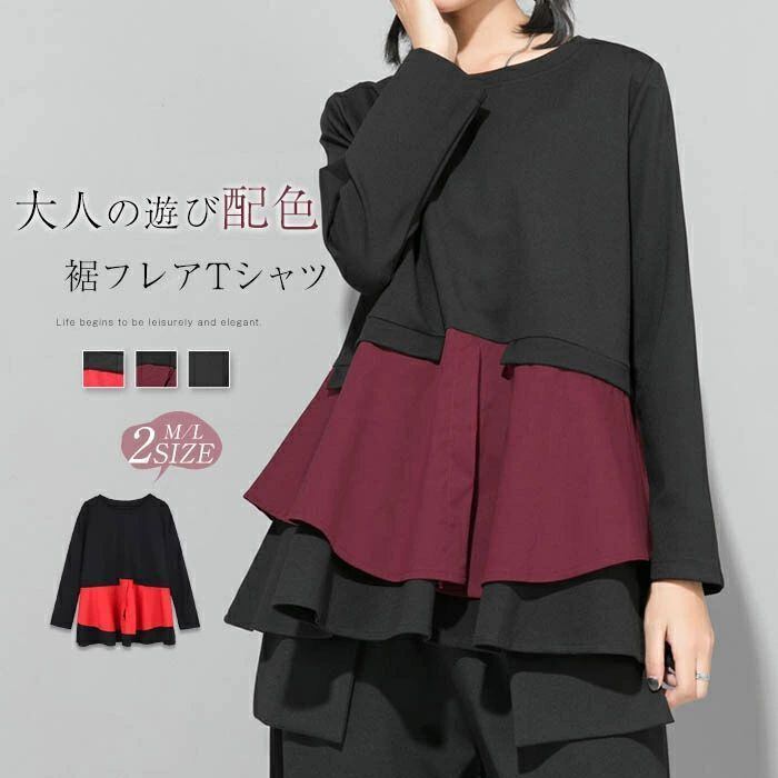 長袖 Tシャツ レディース おしゃれ トップス 裾フレア 切り替えTシャツ カットソー クルーネック 秋 冬 無地 モード系 個性的 大人 カジュアル トレーナー 無地 配色 プルオーバー ゆったり きれいめ 上品 モード シンプル ユニセックス 30代 40代 50代 送料無料 シャツブラウス カジュアル 体型カバー 着回し