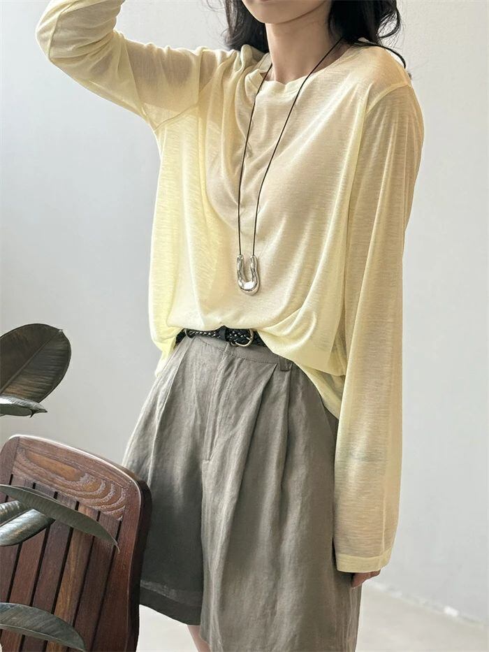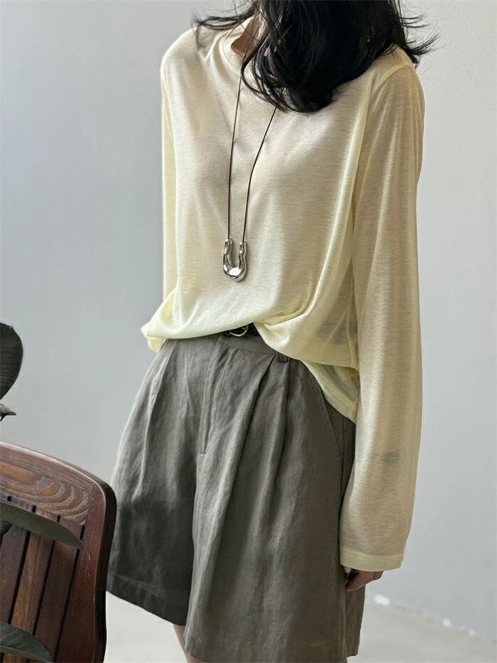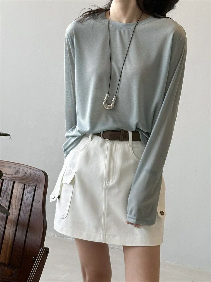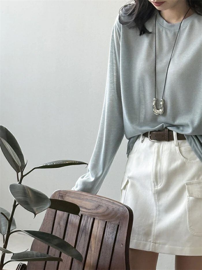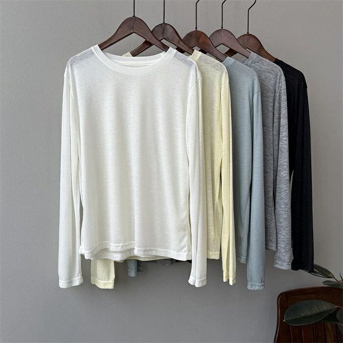 Tシャツ レディース 春夏 トップス インナー 薄手 長袖 UVカット クルーネック 無地 柔らかい カジュアル シンプル ゆったり 体型カバー 着?せ レイヤード 重ね着 通勤OL オフィス フォーマル ビジネス 通学 20代 30代 40代 50代