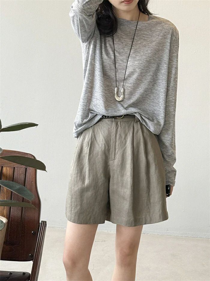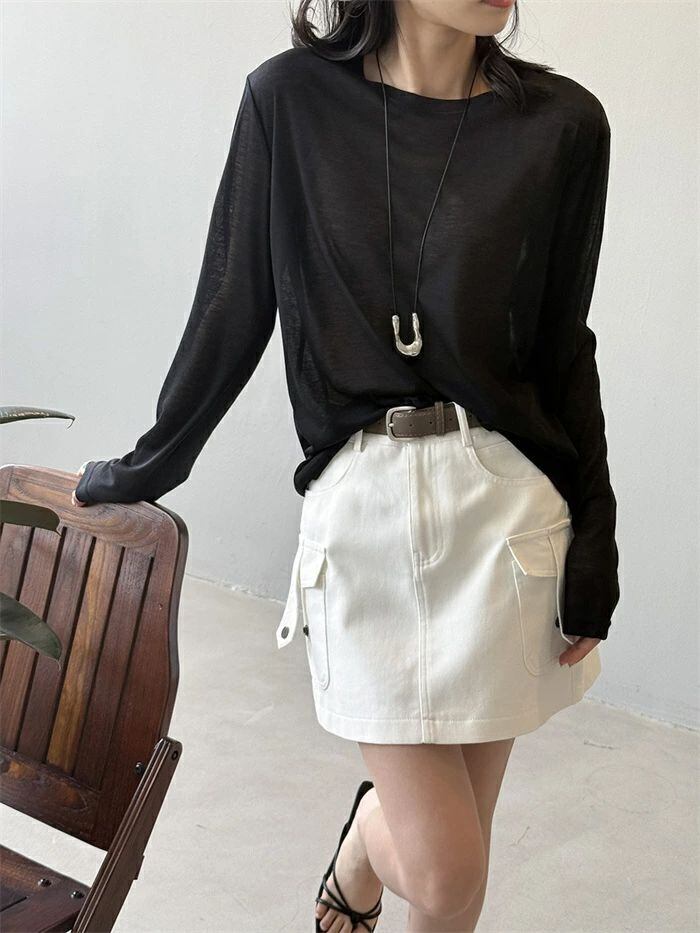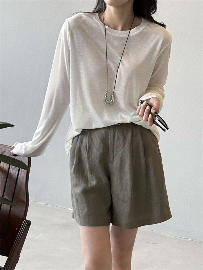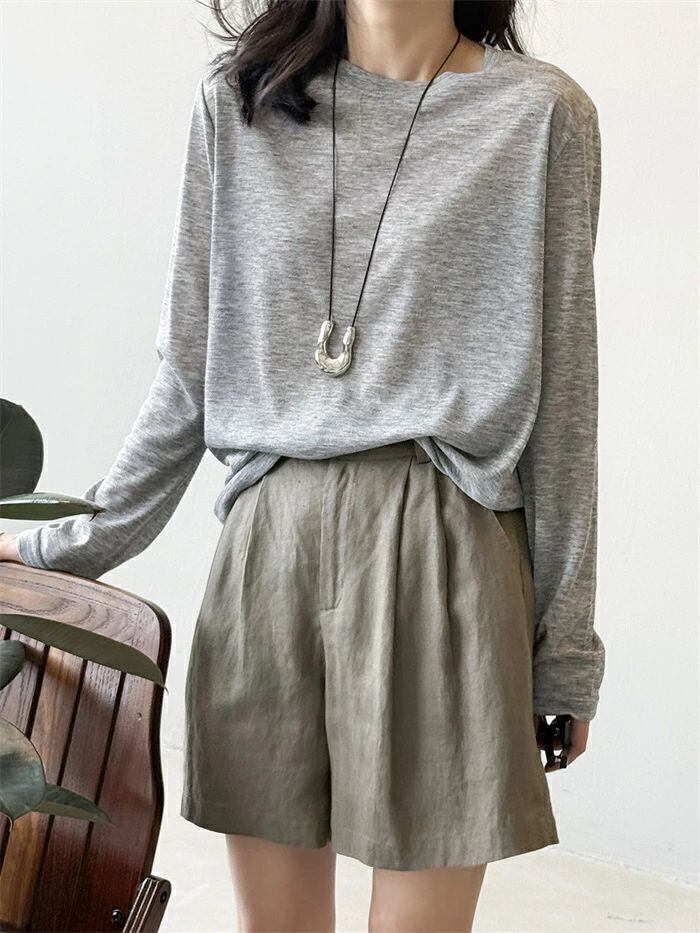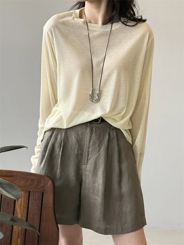 Tシャツ レディース 春夏 トップス インナー 薄手 長袖 UVカット クルーネック 無地 柔らかい カジュアル シンプル ゆったり 体型カバー 着?せ レイヤード 重ね着 通勤OL オフィス フォーマル ビジネス 通学 20代 30代 40代 50代