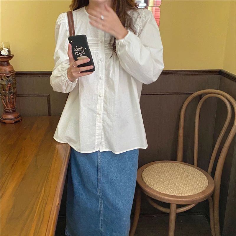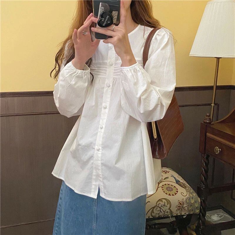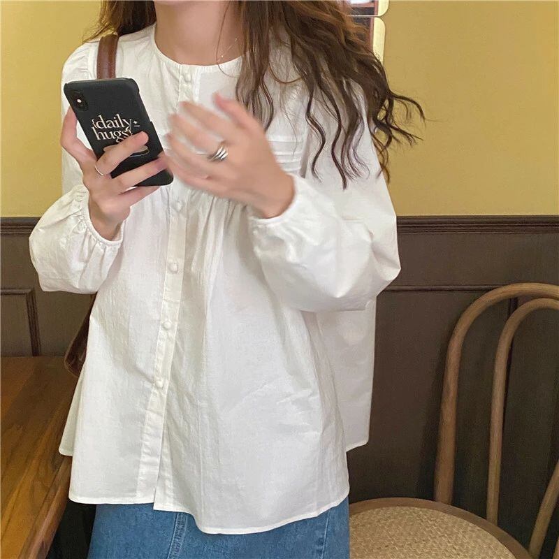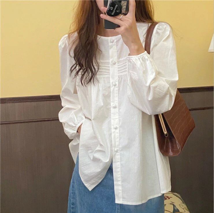 白シャツ 長袖 白ブラウス とろみシャツ レディース 春 秋 綿混紡 ブラウス 上品 トップス ゆったり オシャレ 韓国風 大人 カジュアル 体型