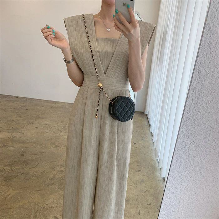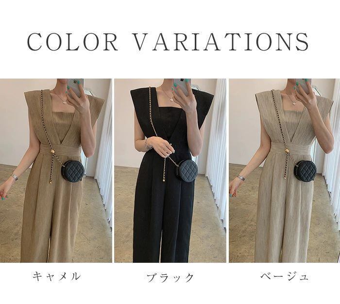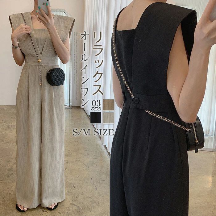 オールインワン サロペット レディース 春夏 ワイドパンツ パンツ ノースリーブ 無地 ワイド おしゃれ ゆったり 体型カバー 着?せ カジュ
