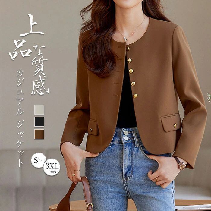 ジャケット レディース ノーカラージャケット アウター ノーカラー フォーマル セレモニースーツ 羽織 長袖 スーツジャケット 無地 ママ オフィス ショート丈 ゆったり 体型カバー 大きめ 華やか エレガント 華奢見せ 通勤着 お洒落 楽ちん 結婚式 通勤 OL 学校行事 学校 参観日 入学式 入園式 卒業式 卒園式 七五三 発表会 ママ 母 母親 服装 成人式 結婚式 披露宴 謝恩会 ママスーツ スーツ フォーマル ナチュラル おしゃれ オシャレ きれいめ 上品 シンプル 春 春服 春物 新作 新着 秋物 秋服 秋 ビジネス フェミニン 30代 40代 50代