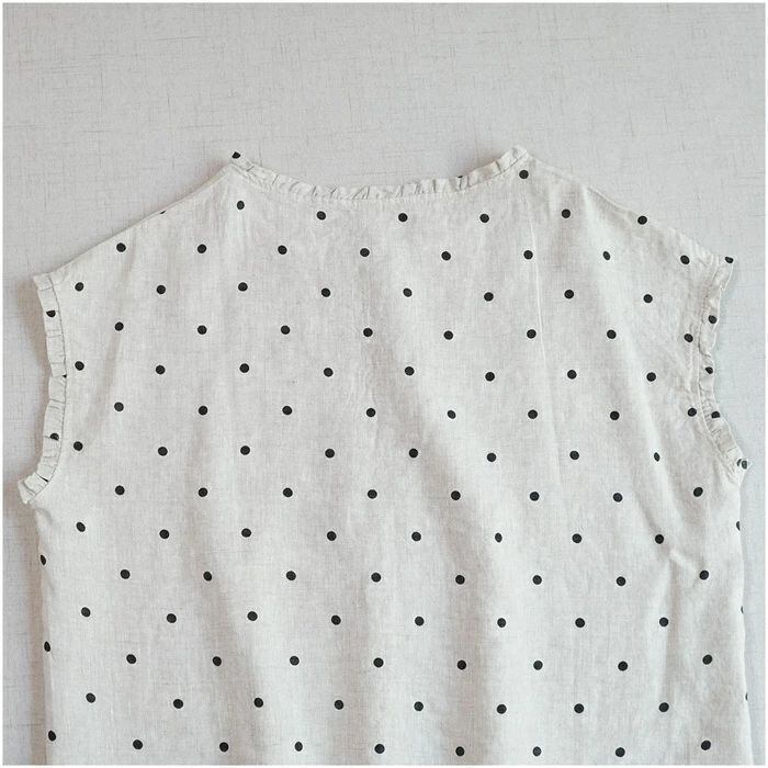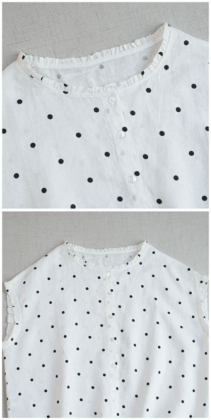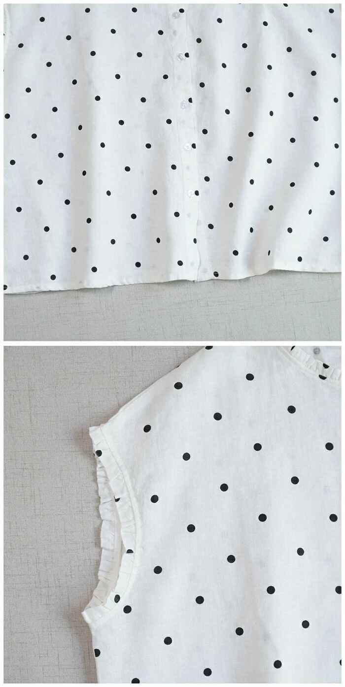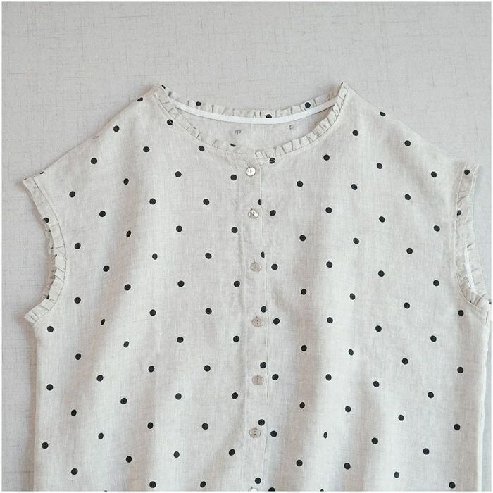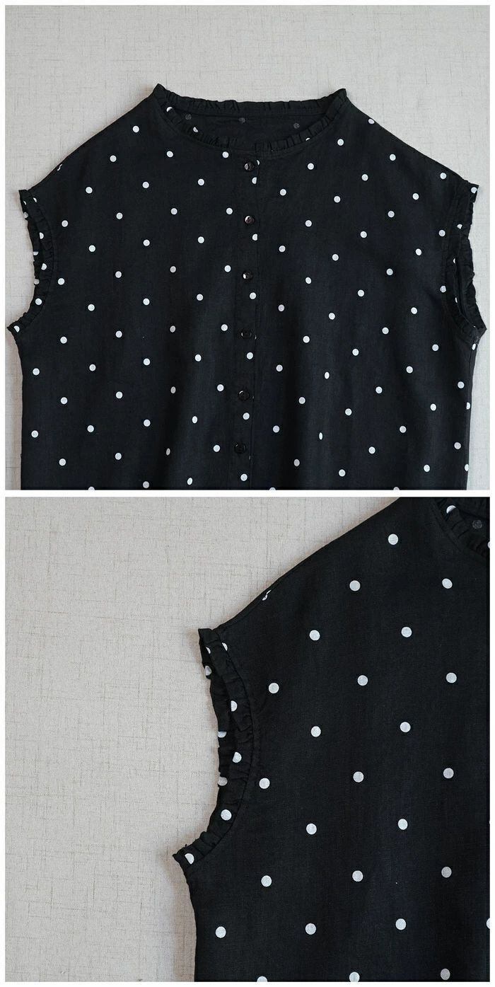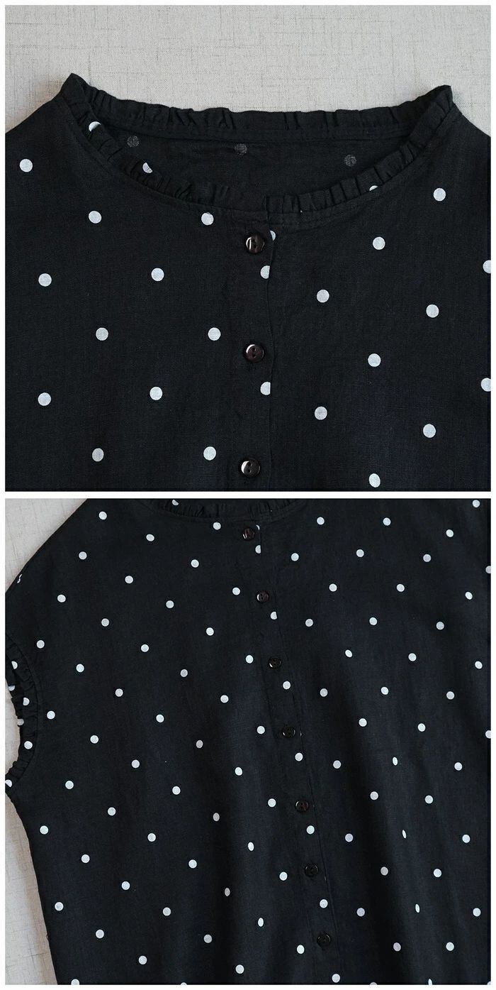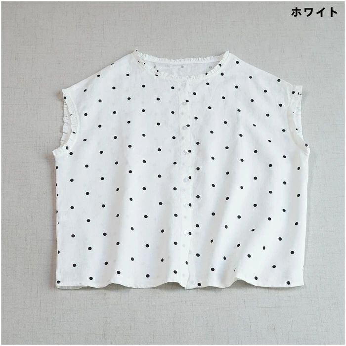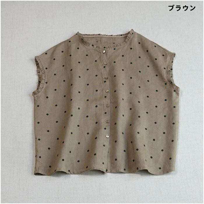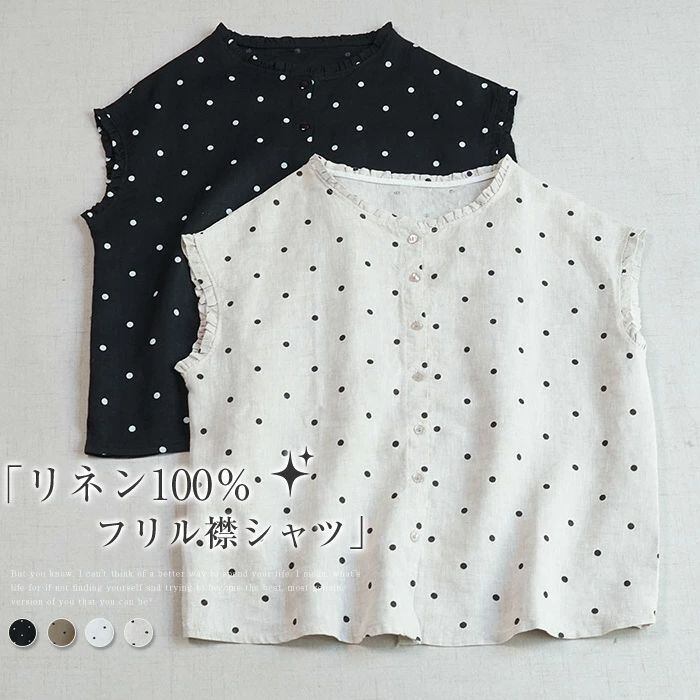 フリル襟 シャツ リネン100% ブラウス レディース ノースリーブ 麻 リネン シャツ ブラウス ナチュラル シャツブラウス 通勤 オフィス ドット柄 水玉柄 春 夏 涼しい 袖なし トップス リネンシャツ カジュアル 大人 前開き 上品 着回し 麻 リネン シンプル 可愛い トップス 着痩せ 体型カバー 送料無料 20代 30代 40代 50代