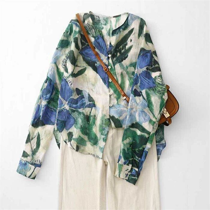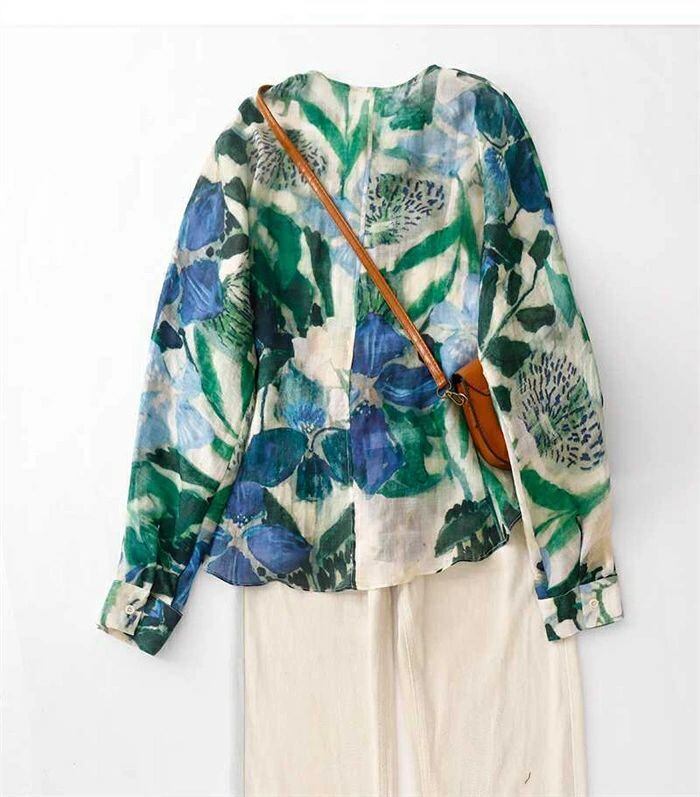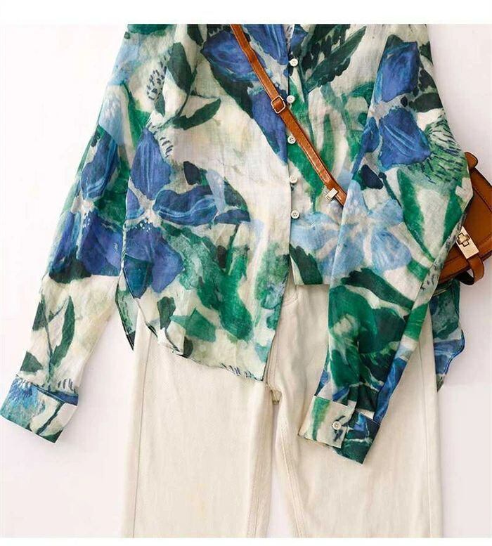 シャツ ブラウス 長袖 レディース UVケア UVカット 春 夏 秋 シャツブラウス 花柄 長袖 Vネック トップス カジュアル ナチュラル ゆったり