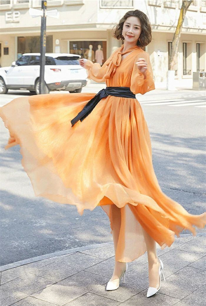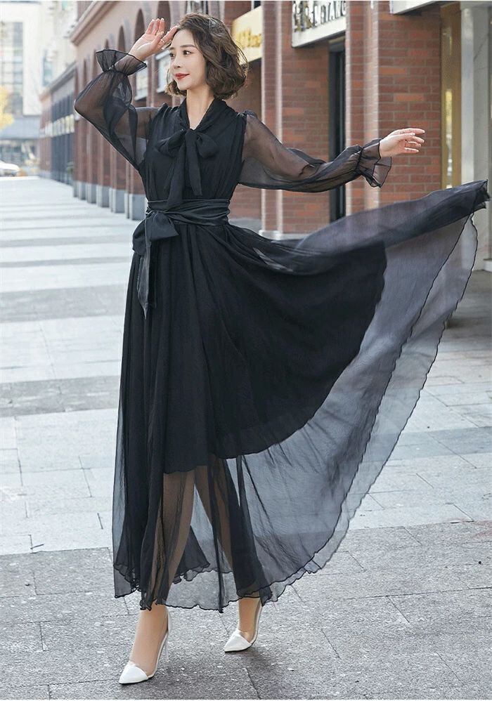 バーフレンチスリーブノースリーブ半袖長袖ロング丈マキシ丈ミモレ丈