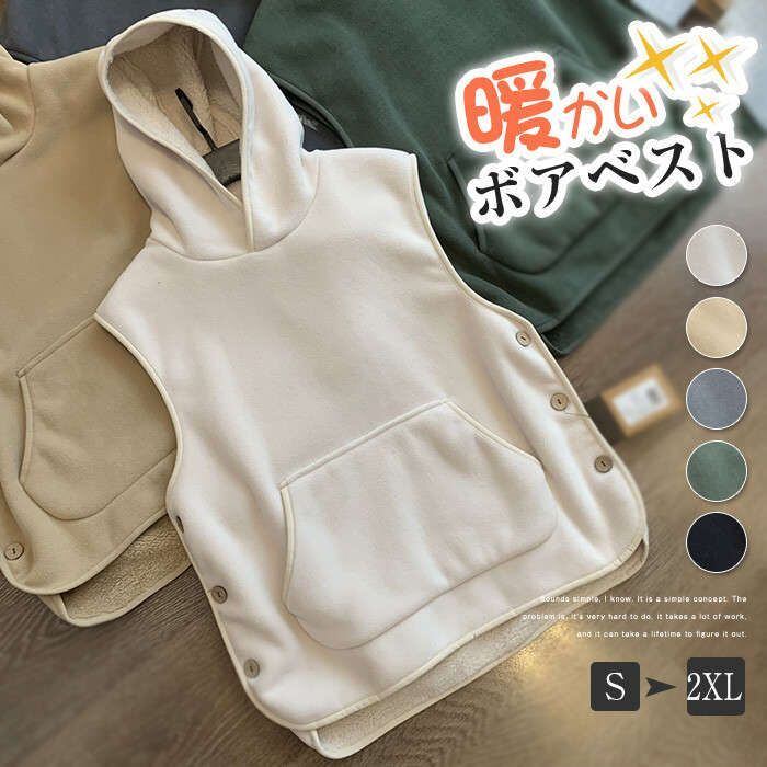 ボアベスト レディース ベスト ジレ ボア ファーベスト フード付き フード ボダン もこもこ ファーコート 無地 秋冬 カジュアル お洒落 ト
