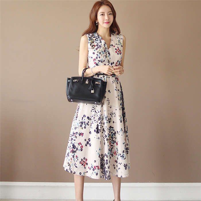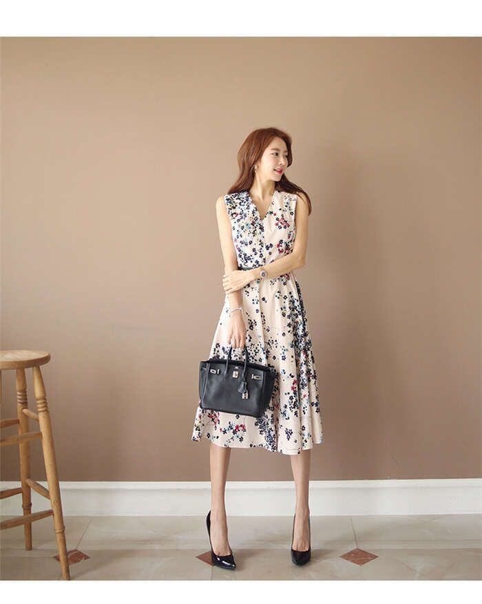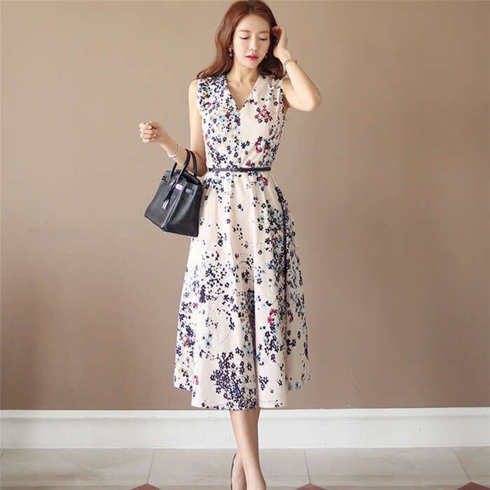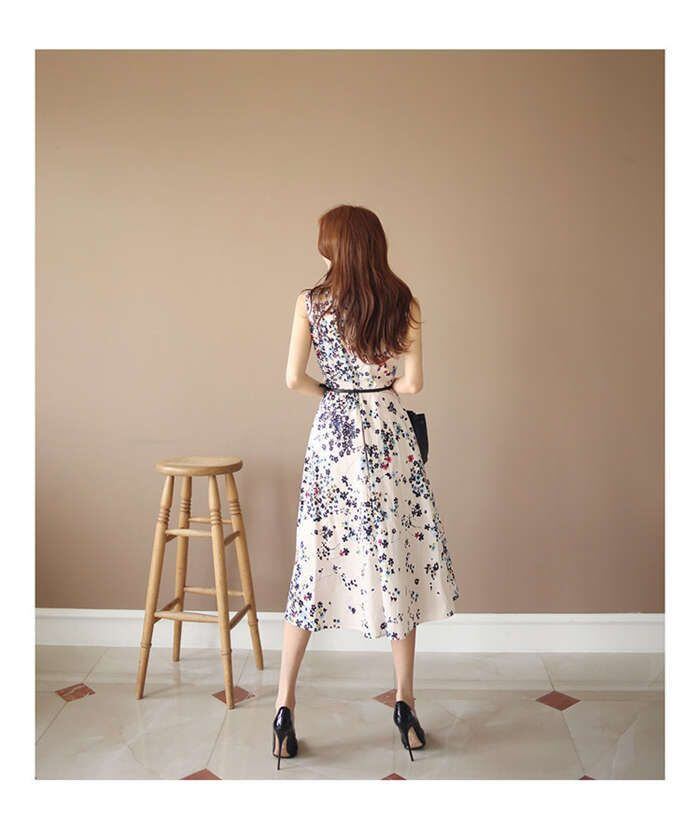 ワンピース レディース 花柄ワンピース 花柄 ワンピース ノースリーブワンピース 結婚式 ベルト付 Vネック Aライン フレアワンピ ミモレ丈 ロングワンピース ロング ガーリー 女子会 二次会 披露宴 リゾート きれいめ大きいサイズ 体型カバー ひざ丈 膝丈 春 夏 キレイめ おしゃれ 30代 40代 春 夏 旅行 海 母