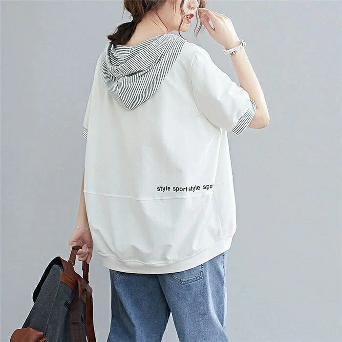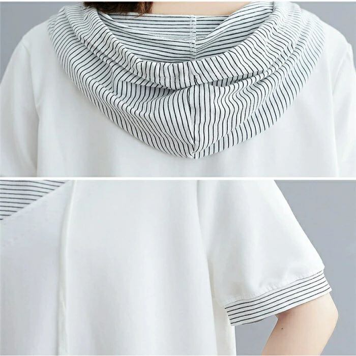 パーカー Tシャツ レディース スウェットフードパーカー トップス 半袖パーカー 切り替え バイカラー フーディ プルオーバー ストライプ 配色 トレーナー おしゃれ カットソーTシャツ 上品 夏新作 送料無料上品 カジュアル 体型カバー 着回し30代 40代 50代 20代