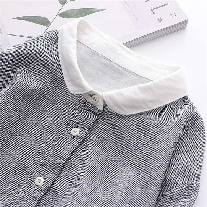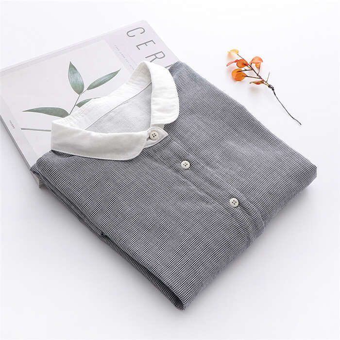 ガーゼシャツ レディース コットン100% シャツブラウス レディース 丸襟 シャツ ブラウス 長袖 トップス 羽織り ガーゼ カジュアル 千鳥柄
