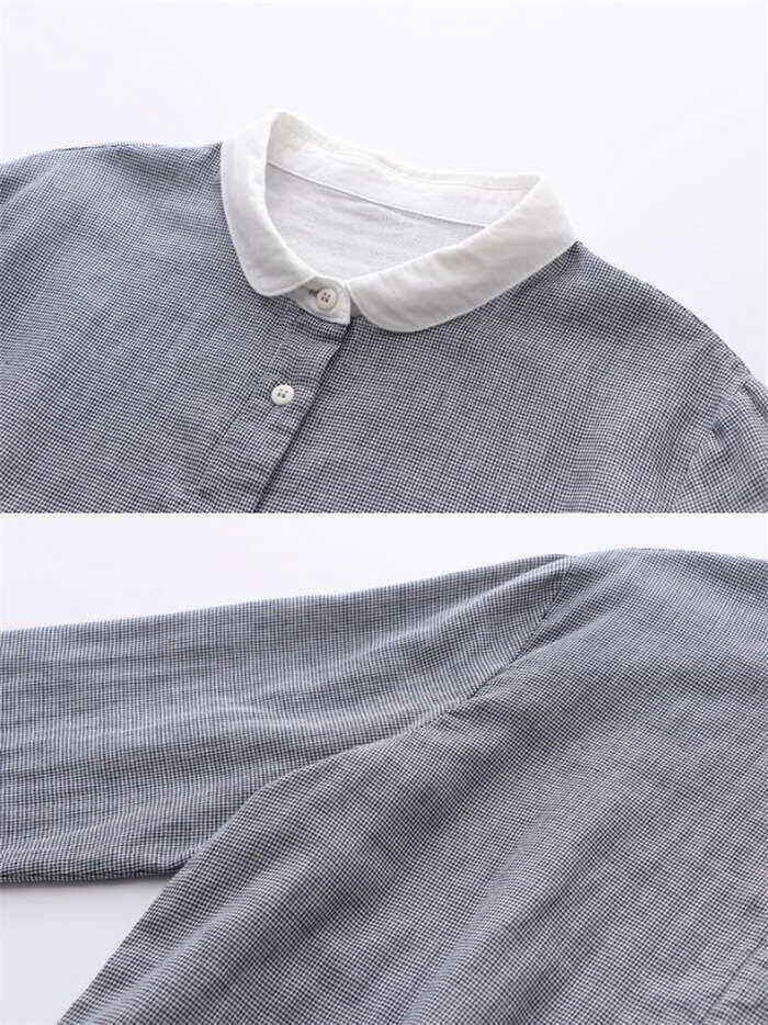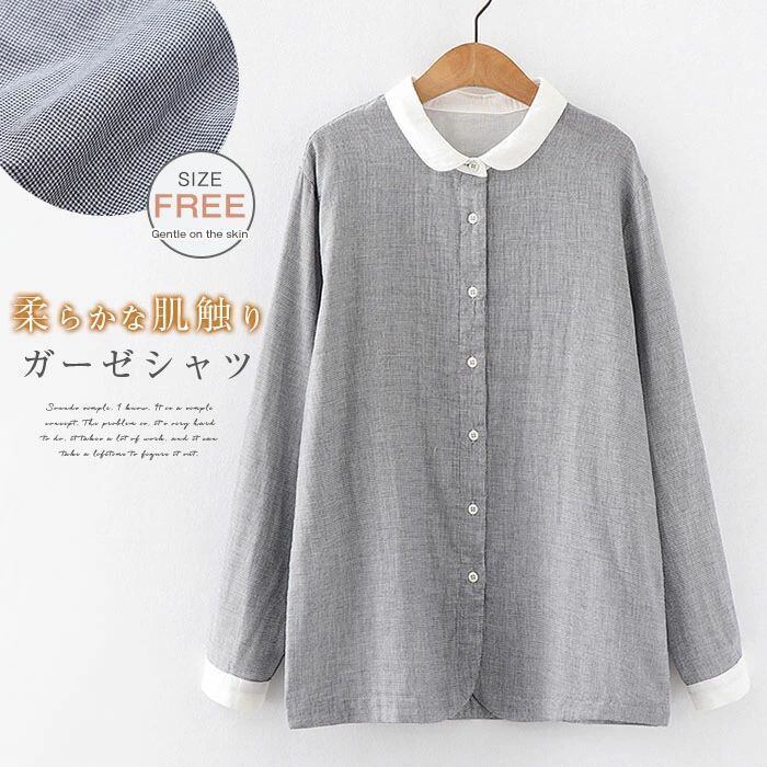 ガーゼシャツ レディース コットン100% シャツブラウス レディース 丸襟 シャツ ブラウス 長袖 トップス 羽織り ガーゼ カジュアル 千鳥柄 2重ガーゼ 大きいサイズ ゆったり 体型カバー 通勤 秋 夏 冬 春 シンプル 上品 着回し ガーゼコットン 柔らかい 可愛い 送料無料