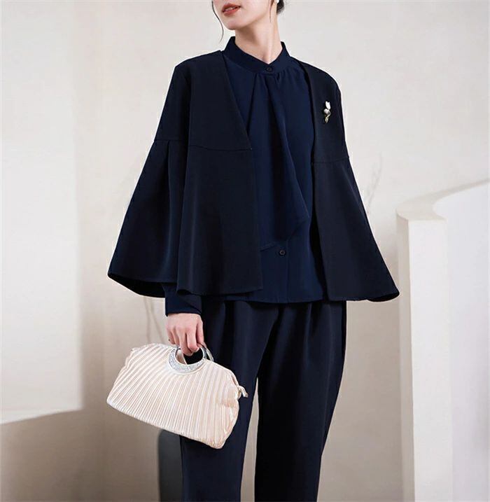 パンツスーツ レディース セットアップ 春 秋 スーツ バルーンパンツ ポンチョ風ジャケット 無地 通勤 フォーマル 上下 2点セット ゆったり