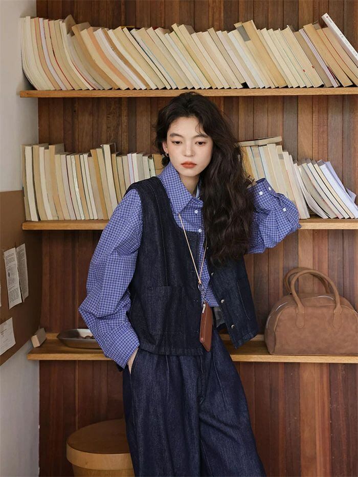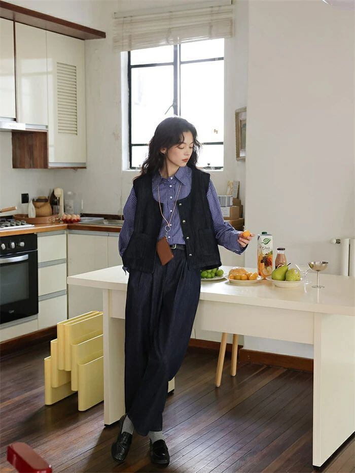 セットアップ レディース 秋冬 3点セット デニム ベスト 前開き 羽織 シャツ 長袖 トップス 折襟 チェック柄 パンツ ボトムス ワイドパンツ デニムパンツ 無地 大きいサイズ ゆったり 体型カバー レトロ カジュアル おしゃれ きれめ オフィス フォーマル 通勤OL 通学 母 結婚式 パーティー 結婚パーティー 二次会 披露宴 お呼ばれ 普段使い 通学 通勤 OL ビジネス 入園式 入学式 ママ 卒園式 お食事会 成人式 卒業式 謝恩会 同窓会 演奏会 発表会 女子会 参観日 七五三 お宮参り 20代 30代 40代