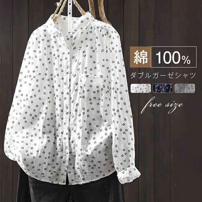 ガーゼ シャツ レディース 長袖 ダブルガーゼ 綿100% シャツブラウス ガーゼシャツ シャツ ブラウス 長袖 トップス 綿 2重ガーゼ カジュア