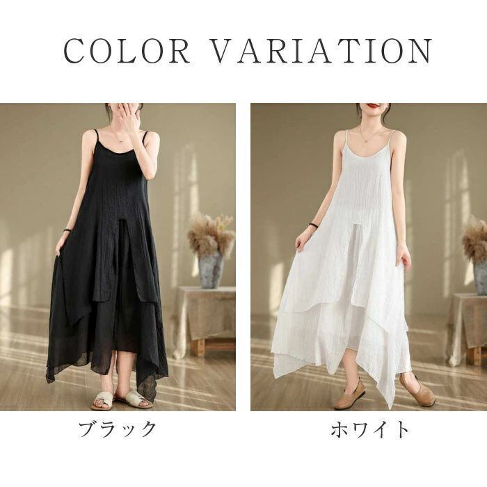 キャミワンピース インナーワンピース レディース 夏 綿麻 ロングワンピース ノースリーブ Aライン 不規則 無地 ペチワンピース フレア イ