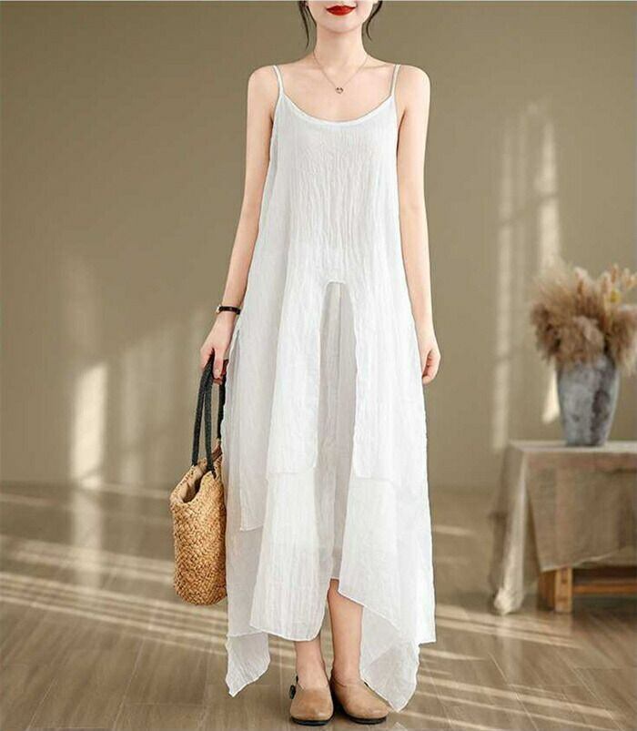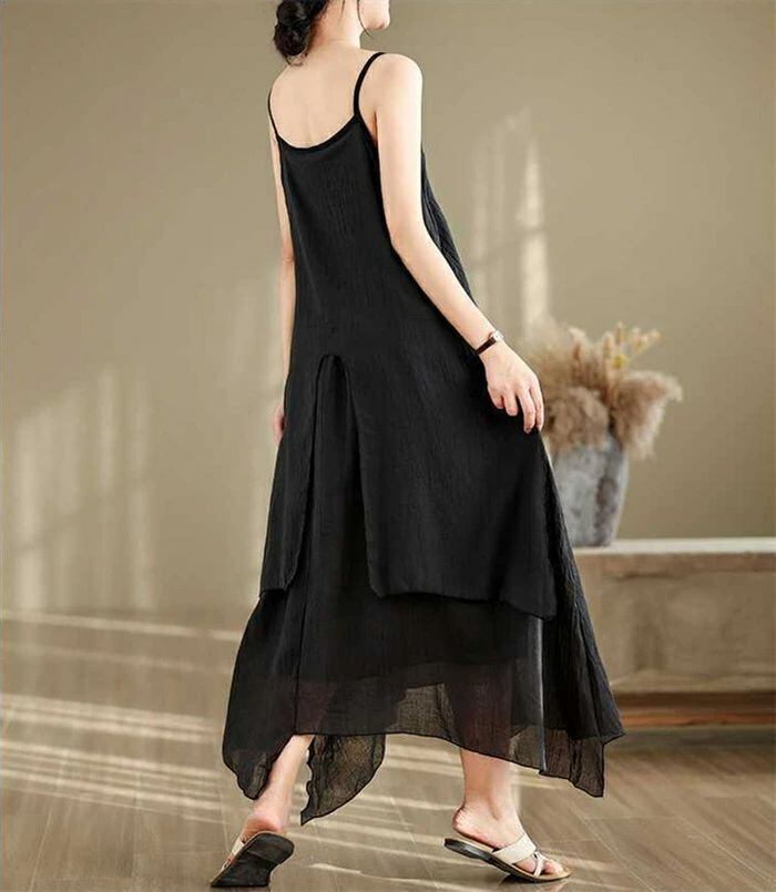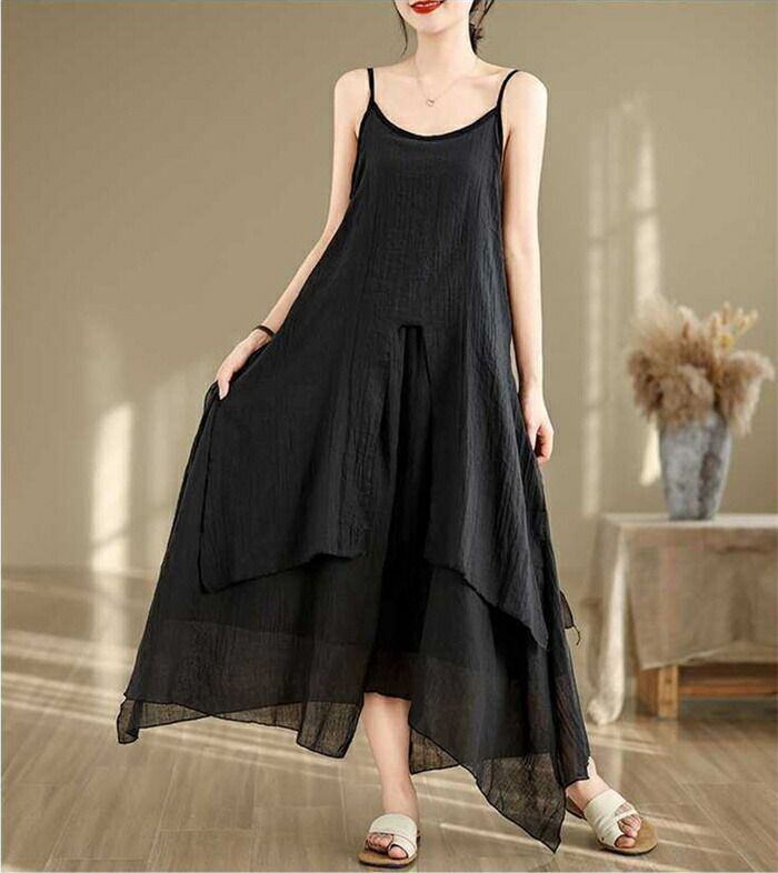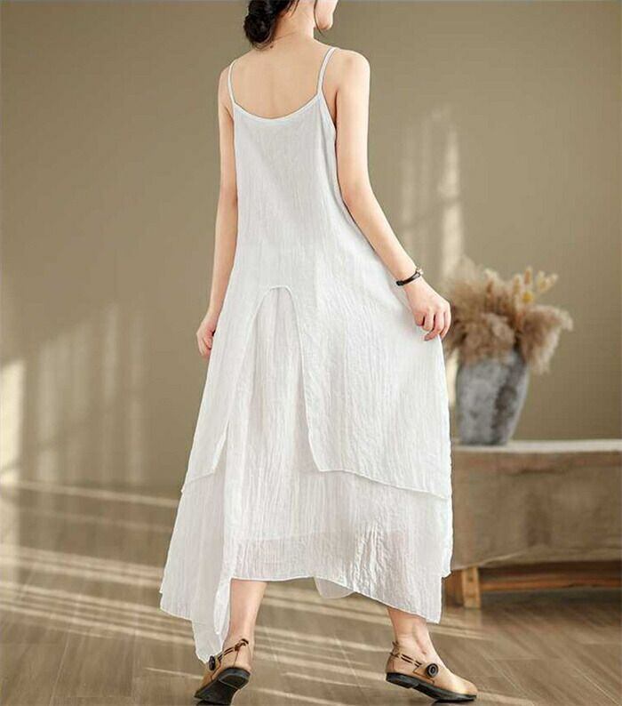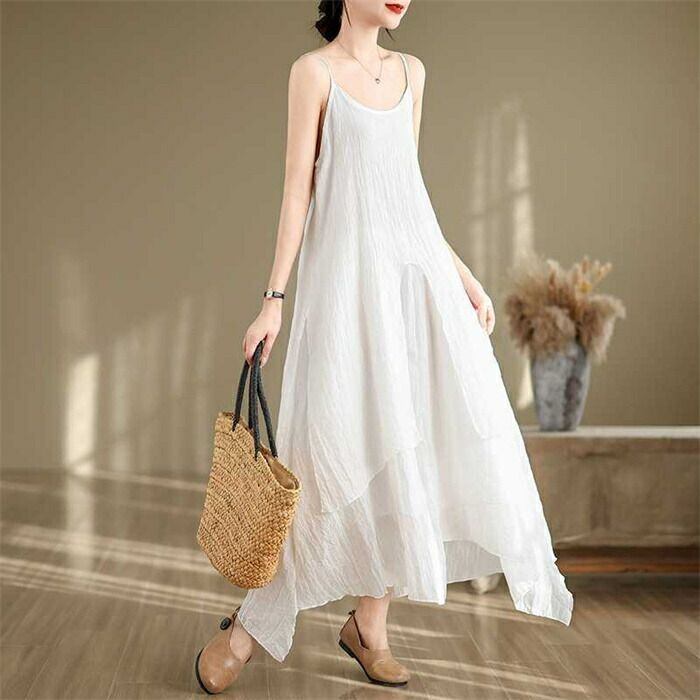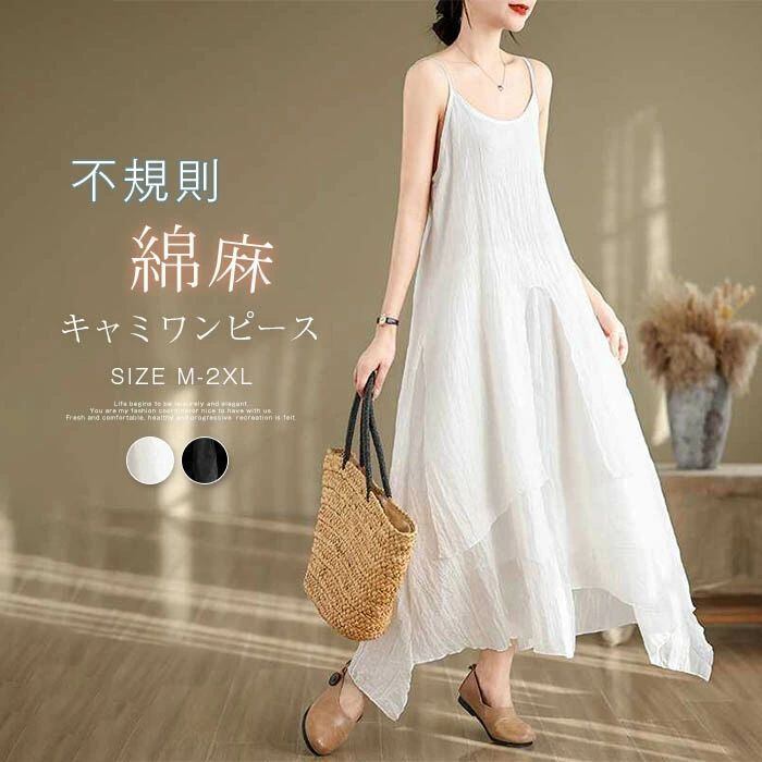 キャミワンピース インナーワンピース レディース 夏 綿麻 ロングワンピース ノースリーブ Aライン 不規則 無地 ペチワンピース フレア インナー 無地 重ね着 ゆったり 体型カバー 着?せ 可愛い カジュアル きれいめ ベーシック 部屋着 送料無料