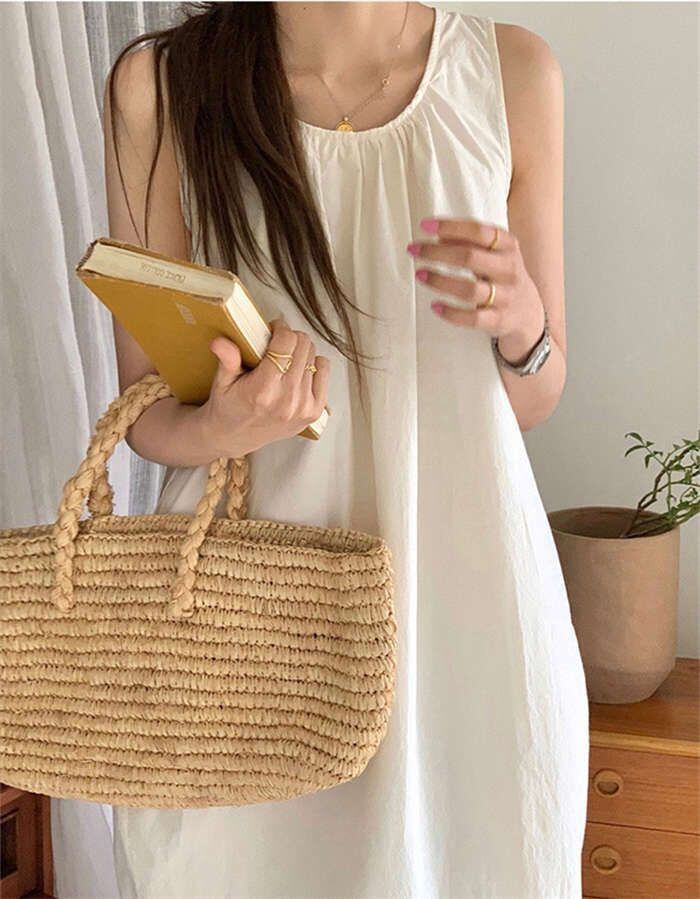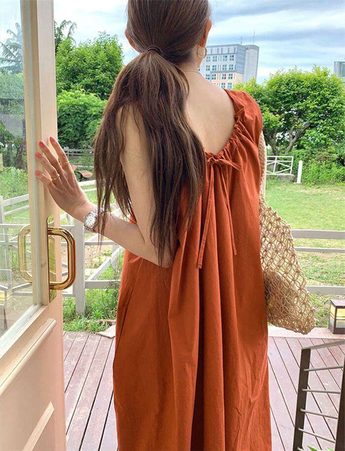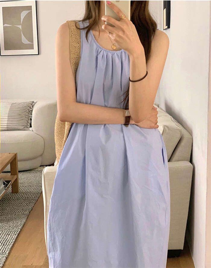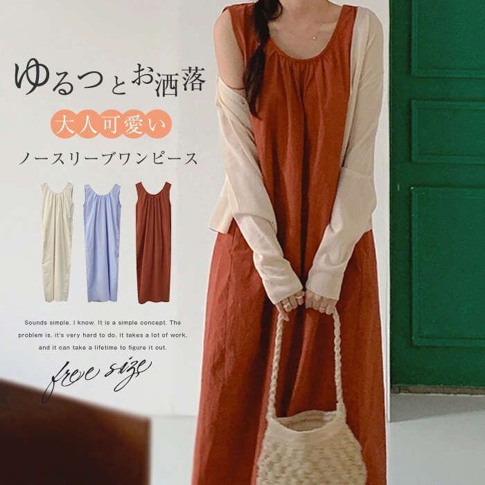 マキシワンピース レディース 夏 ノースリーブ ワンピース マキシ丈 Aライン Uネック ワンピース ノースリーブ ゆったり 体型カバー 大きい