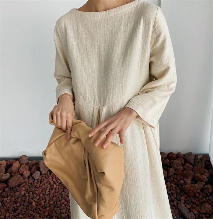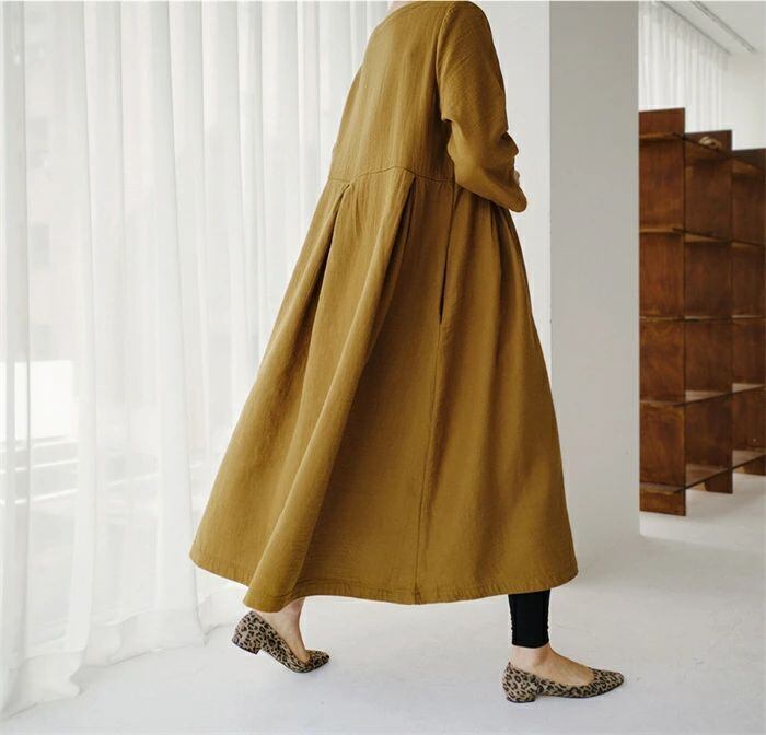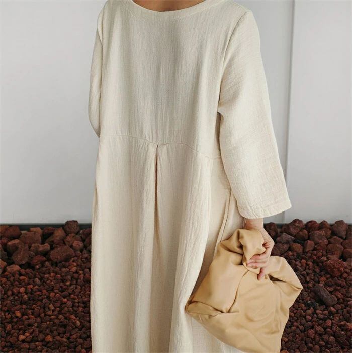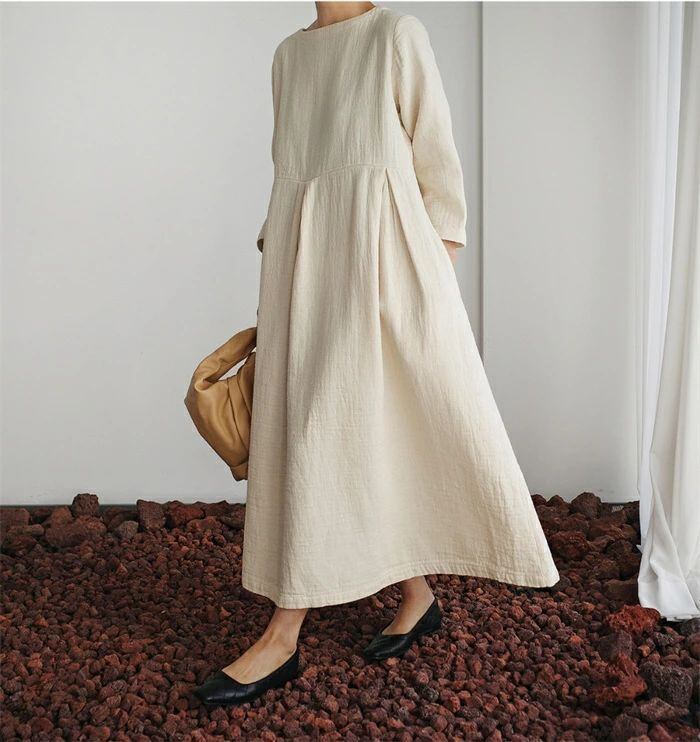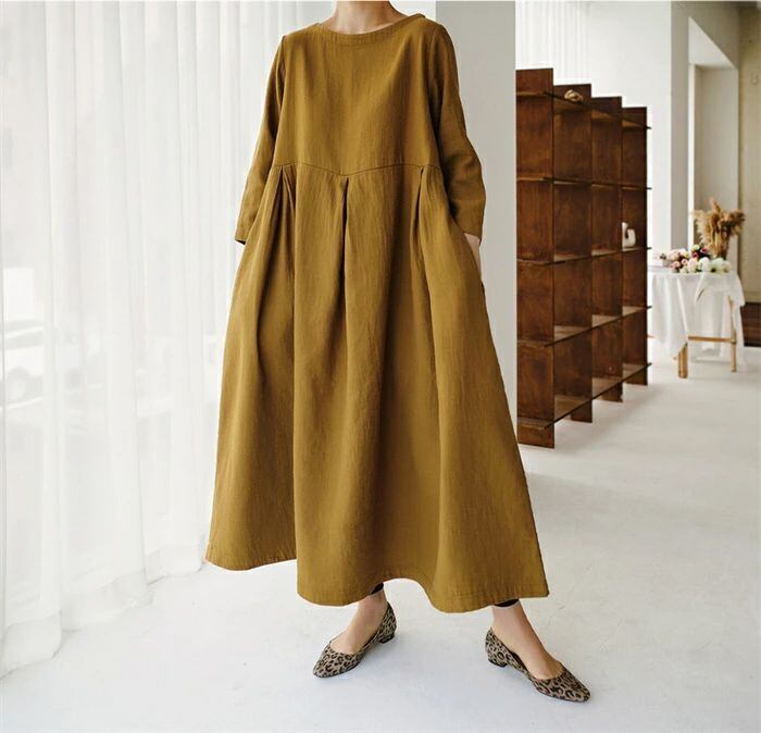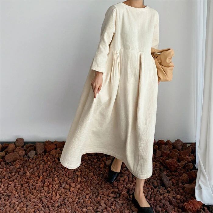 ワンピース レディース ロングワンピース ワンピ 綿麻風 綿麻風ワンピ ロングワンピ ロング丈 長袖 無地 マキシワンピース 綿混 クルーネック 丸首 マキシ丈 ゆったり 体型カバー 大きいサイズ 着?せ キレイめ おしゃれ 20代 30代 40代 50代 春 夏 旅行 海 母 森ガール