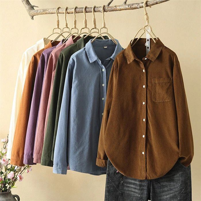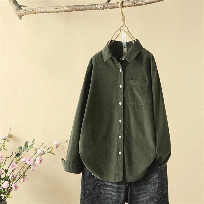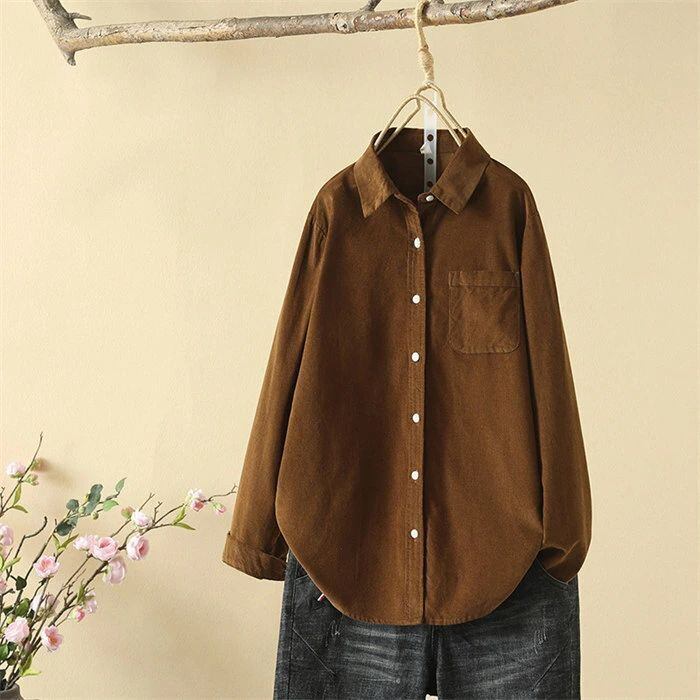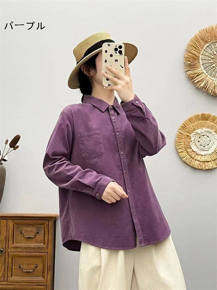 シャツ コーデュロイ 無地 コーデュロイ シャツ レディース 長袖 ブラウス シャツ トップス シャツブラウン 大人 厚手 秋 冬 通勤 通学 OL 前開き ゆったり 仕事 オフィス ビジネス 大きいサイズ ゆったり カジュアル シンプル ナチュラル 送料無料
