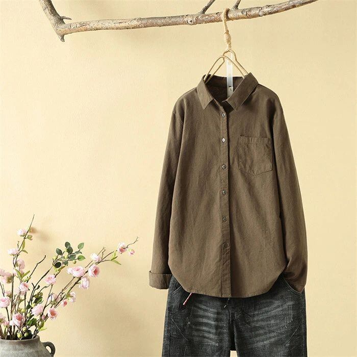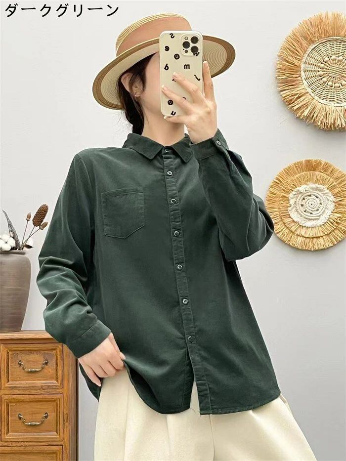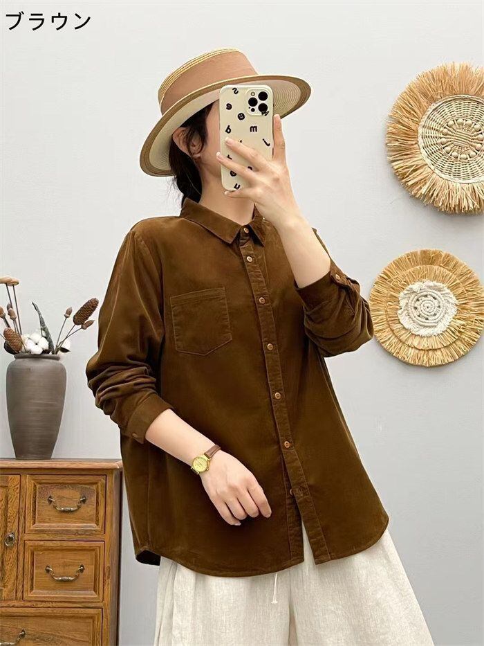 シャツ コーデュロイ 無地 コーデュロイ シャツ レディース 長袖 ブラウス シャツ トップス シャツブラウン 大人 厚手 秋冬 通勤 通学 OL