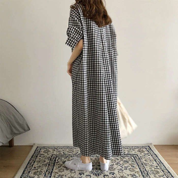ロングシャツワンピース レディース ロングワンピース 春夏 チェック柄 半袖 ワンピース きれいめ 大きいサイズ きれいめ 着痩せ 通勤 大人