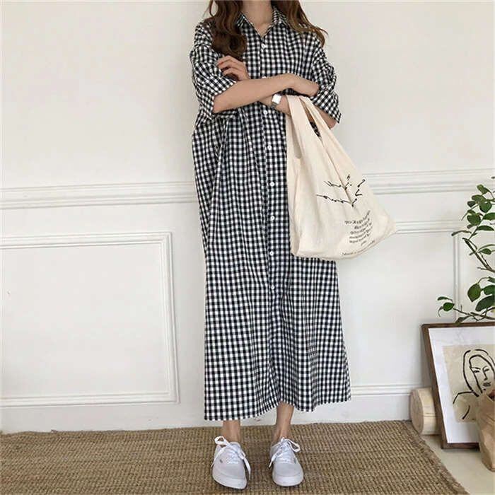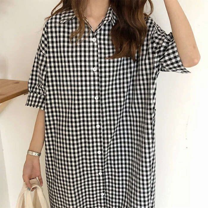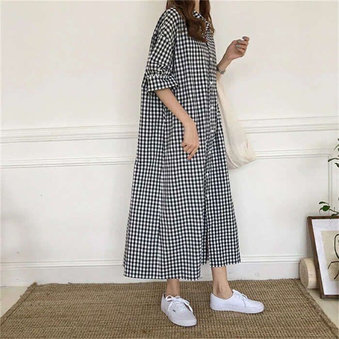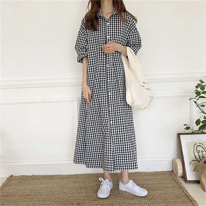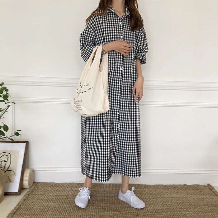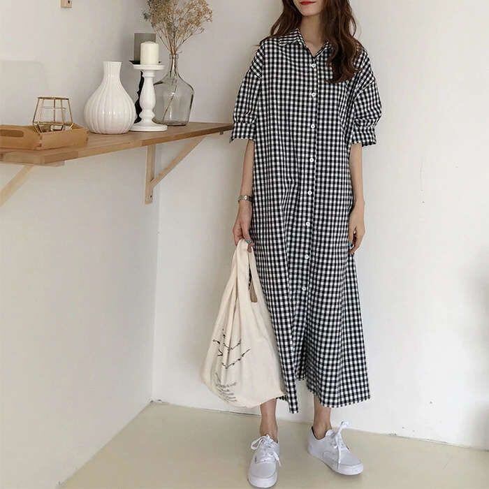 ワンピース レディース ロングワンピース 春夏 チェック柄 半袖 ワンピース きれいめ 大きいサイズ きれいめ 着痩せ 通勤 大人 上品 ロングシャツ ロングシャツワンピース 新作 韓国風 妊婦服 可愛い 上品 送料無料