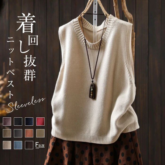 ニットベスト ニット ベスト レディース 秋 ニットトップス トップス 重ね着 ノースリーブ 無地 ゆったり お洒落 レイヤード プルオーバー 体型カバー カジュアル シンプル レトロ ルームウェア 春 冬 女性 お出かけ 通勤 通学 20代 30代 40代 50代 送料無料