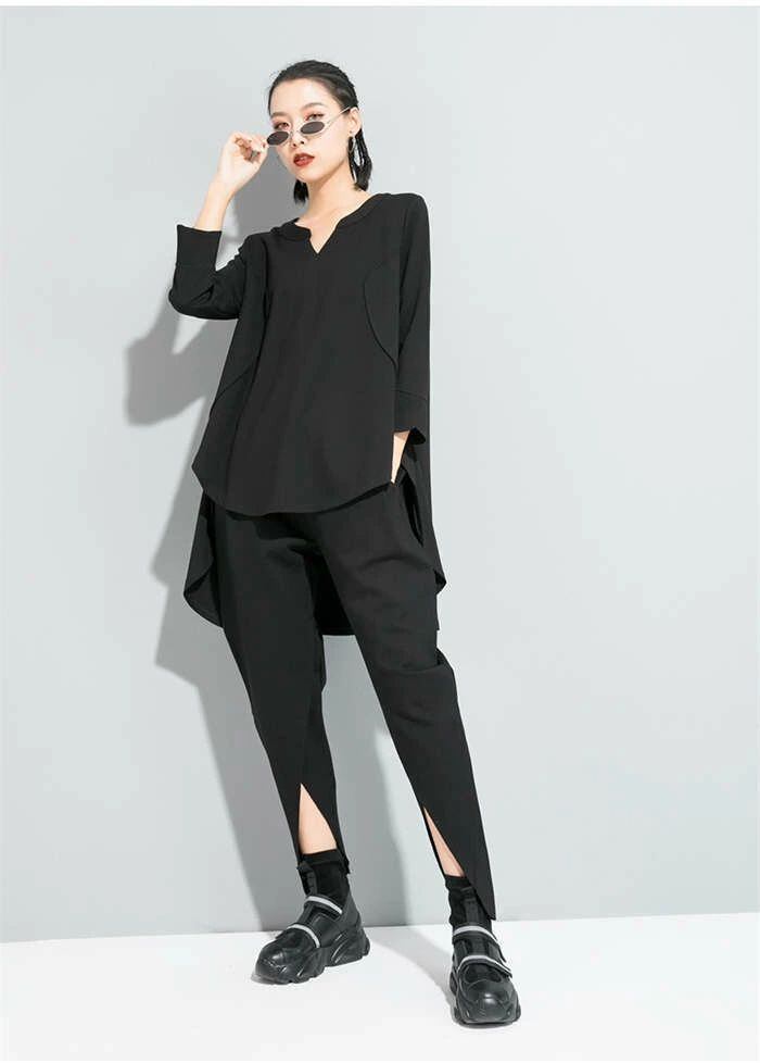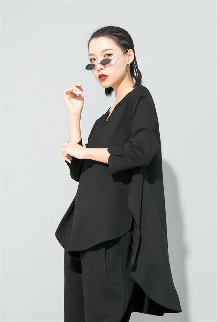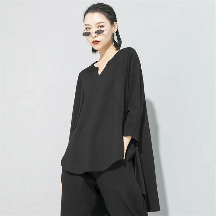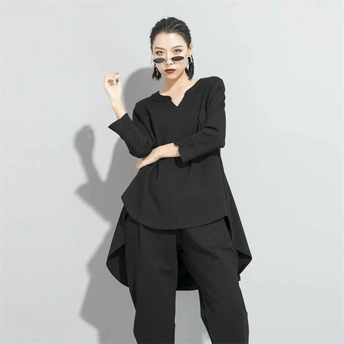 Tシャツ レディース アシンメトリーTシャツ ロングTシャツ 不規則 長袖 トップス プルオーバー 無地 大きいサイズ ゆったり 体型カバー おしゃれ シンプル レイヤード ロング丈 ロング シャツブラウス 黒 シンプル 着やせ カットソー レディース 七分袖 tシャツ アシメトリー 変形 オシャレ トップス カジュアル モード系 ビジュアル系 原宿系 個性的 きれいめ 春 秋 30代 40代 20代 送料無料