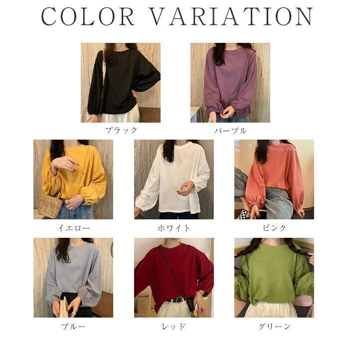 長袖tシャツ レディース トップスTシャツ カットソー ティーシャツ 丸首 ランタンスリーブ カジュアル ボリュームスリーブ クルーネック ゆ
