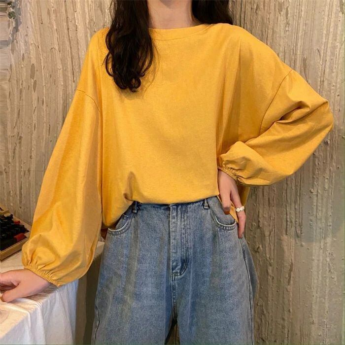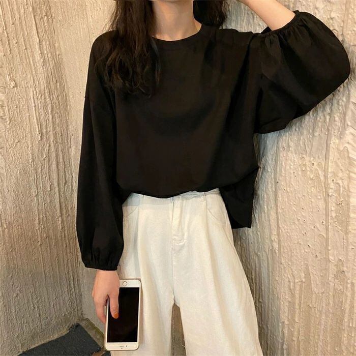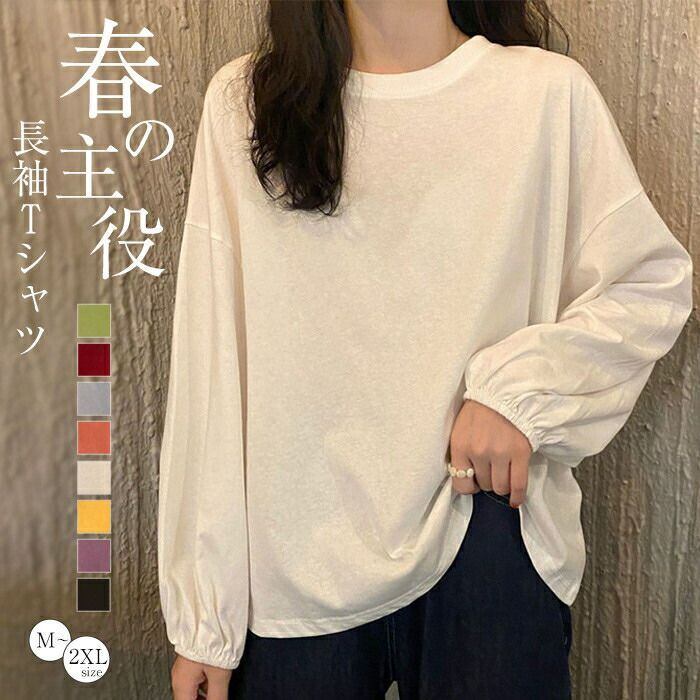 長袖tシャツ レディース トップスTシャツ カットソー ティーシャツ 丸首 ランタンスリーブ カジュアル ボリュームスリーブ クルーネック ゆったり 無地 着回し 着痩せ 重ね着 通勤 カジュアル 春夏秋 無地 大きいサイズ ゆったり 体型カバー おしゃれ 送料無料