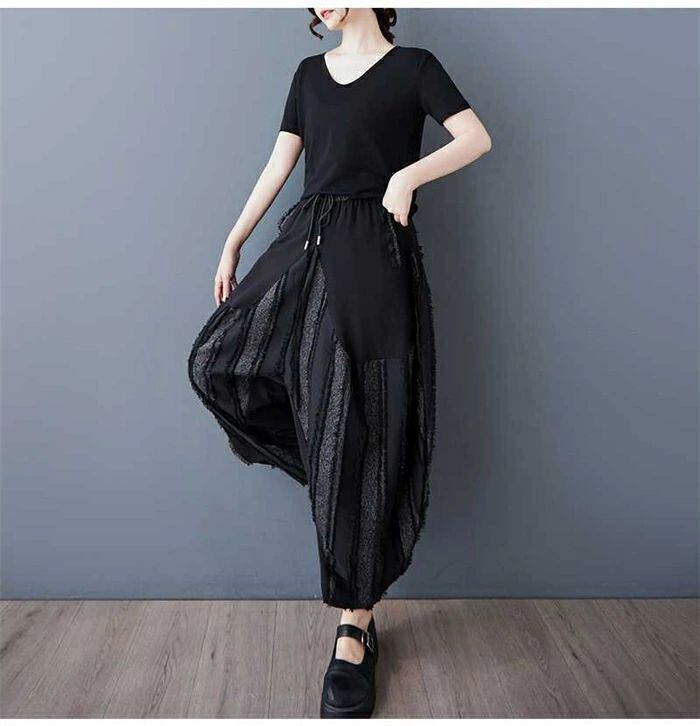 膝下切り替え切替ハイウエストアシンメトリースキッパードルマンギ