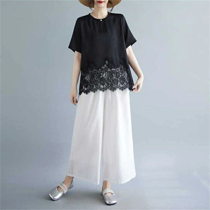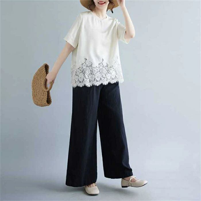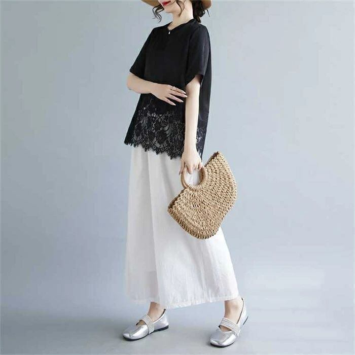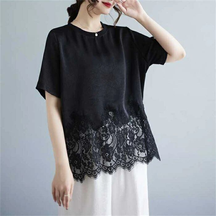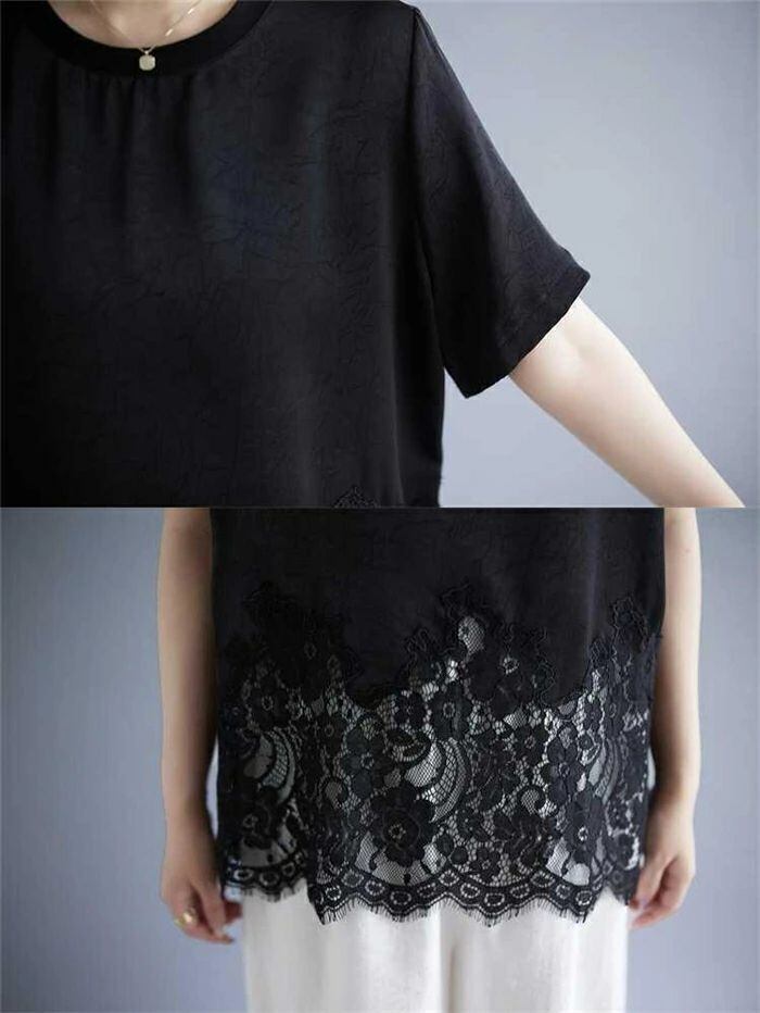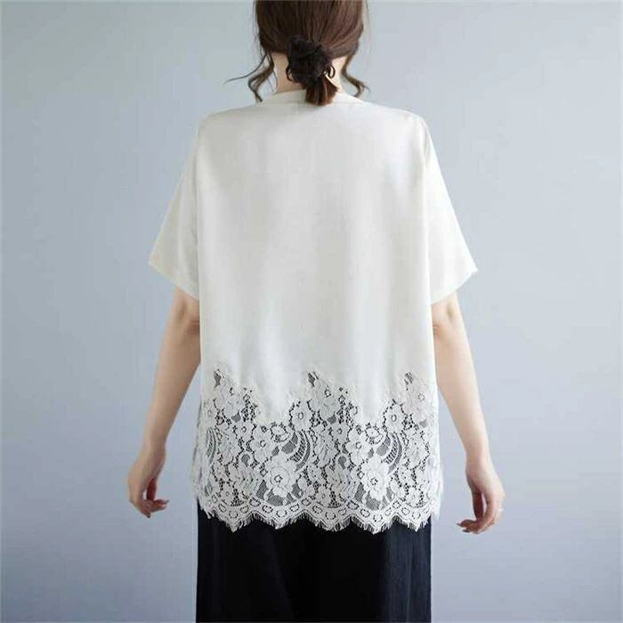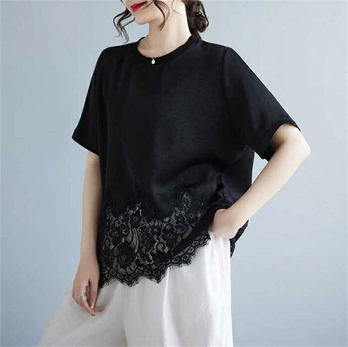 Tシャツ レース裾 レディース 半袖 春夏 クルーネック 体型カバー トップス ティーシャツ レディーストップス 裾デザイン オシャレ カジュ