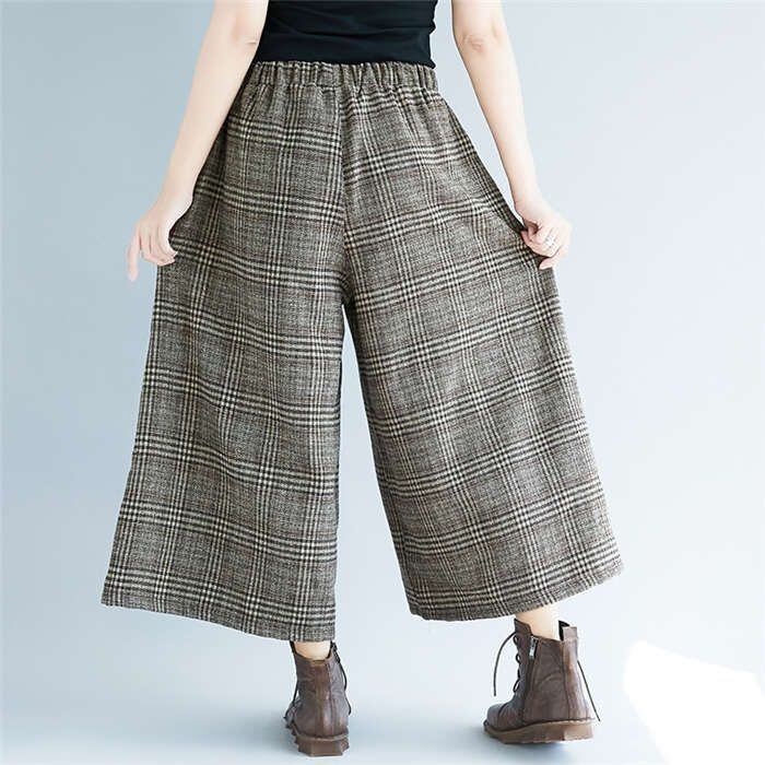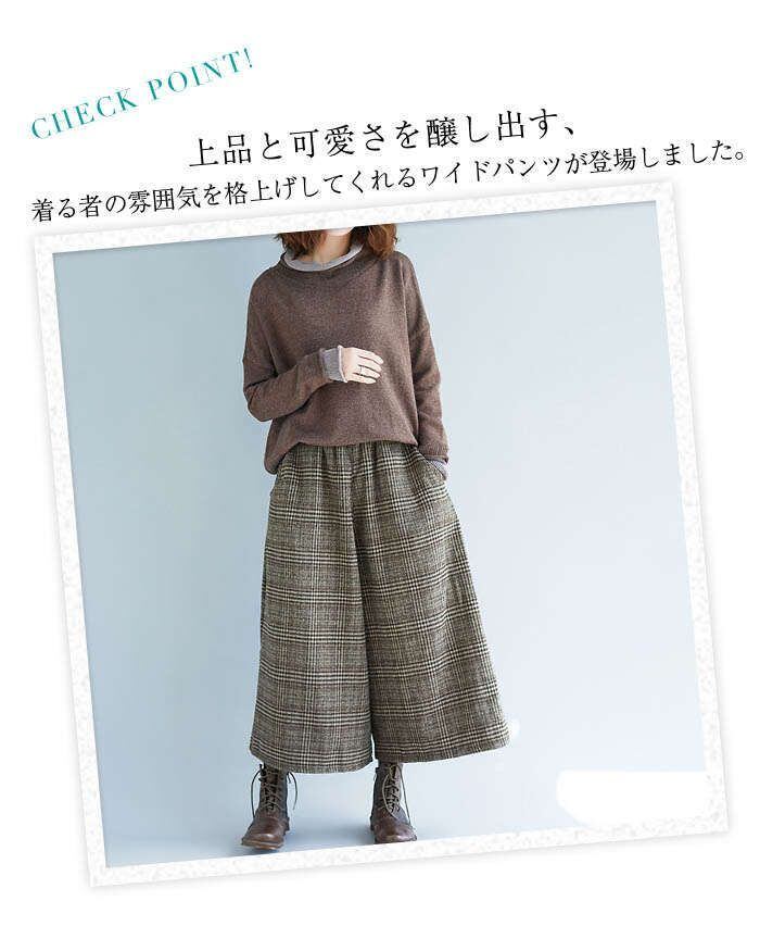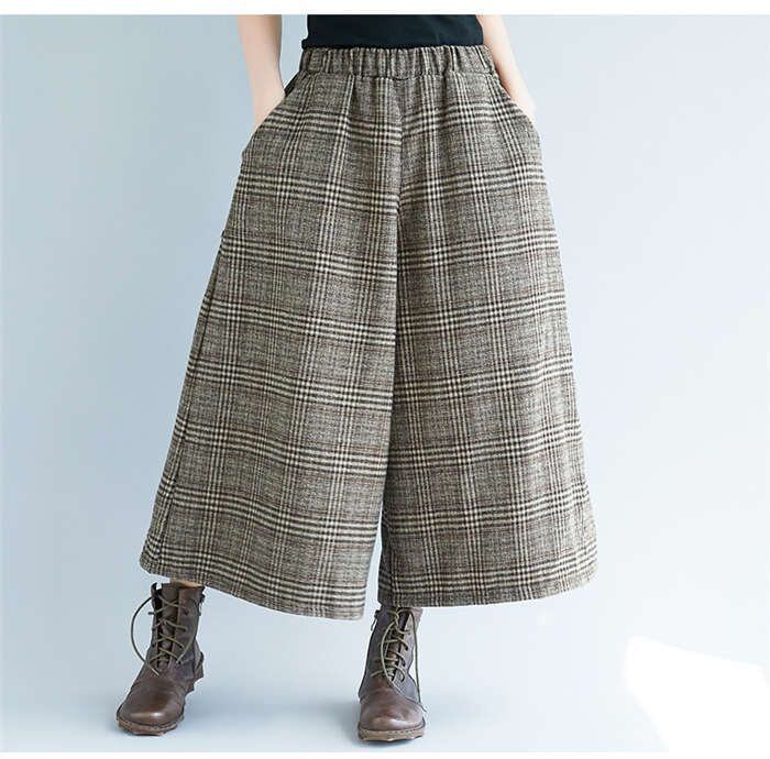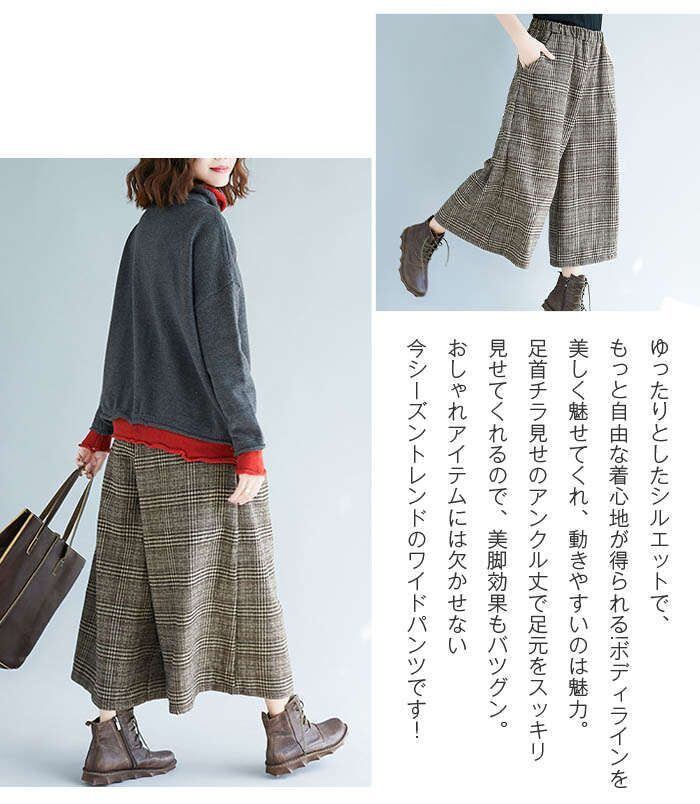 ワイドパンツ レディース ガウチョパンツ ズボン ボトムス チェック柄 ボトムス ウエストゴム ハイウェスト 美脚 大きいサイズ カジュアル 通勤 秋冬 30代 40代 50代 送料無料 コーデ 着痩せ 通勤 オフィス OL 30代 40代 50代 ファション おしゃれ
