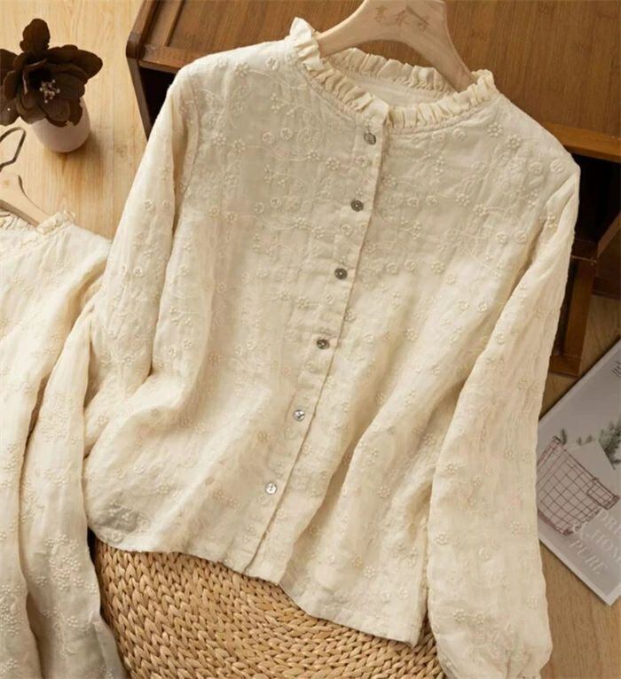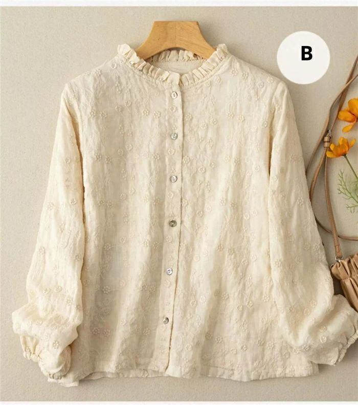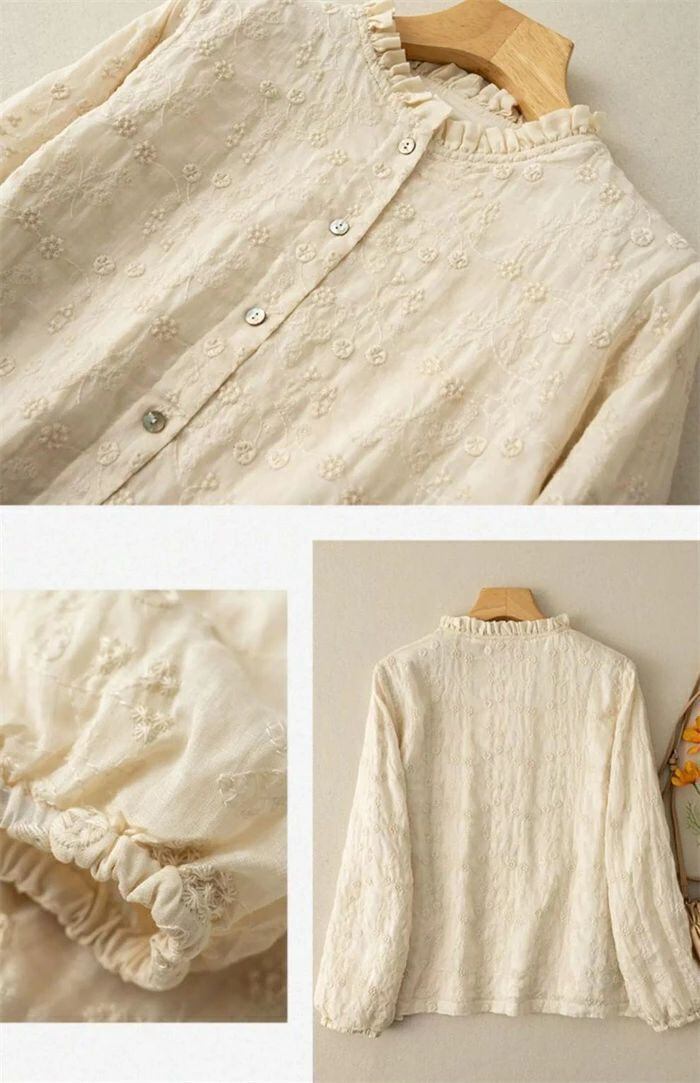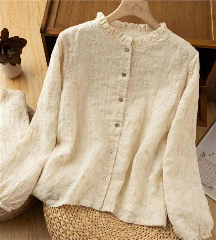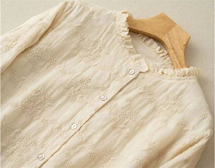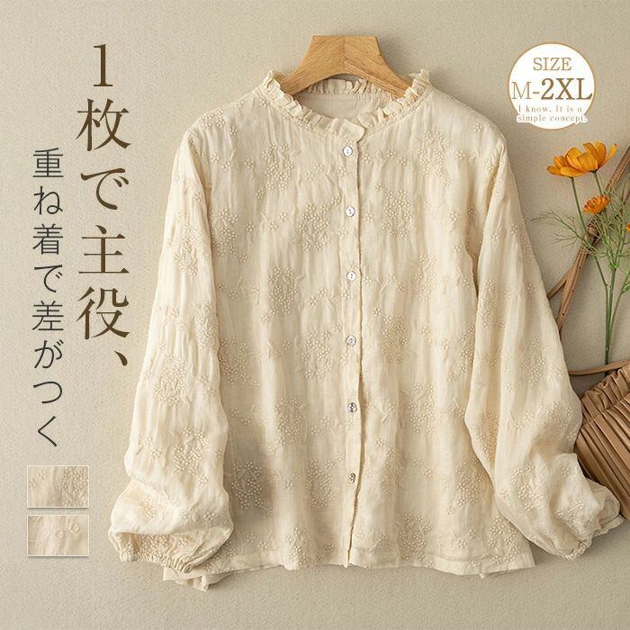 フリル襟 シャツ ブラウス 綿 コットン 刺繍 花柄 レディース 長袖 トップス シャツ ブラウス カジュアル シンプル ゆったり 大きいサイズ 体型カバー ナチュラル 大人 可愛い 着回し 通勤 通学 春 秋 冬 森ガール 30代 40代 50代 送料無料 きれいめ 新作 着痩せ OL 通勤 オフィス 着回し 肌に優しい ミセス 大人 かわいい シンプル カジュアル オフィス ナチュラル 定番 可愛い