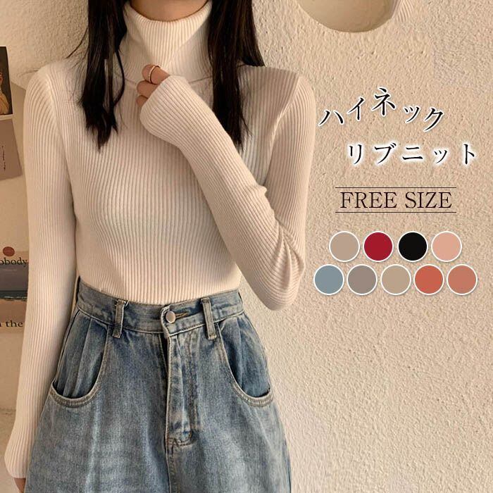 ニット カットソー ベーシックニット リブ ハイネック レディース 長袖 コットン 柔らかい シンプル 着痩せ 女性らしい 暖かい 上品 大人