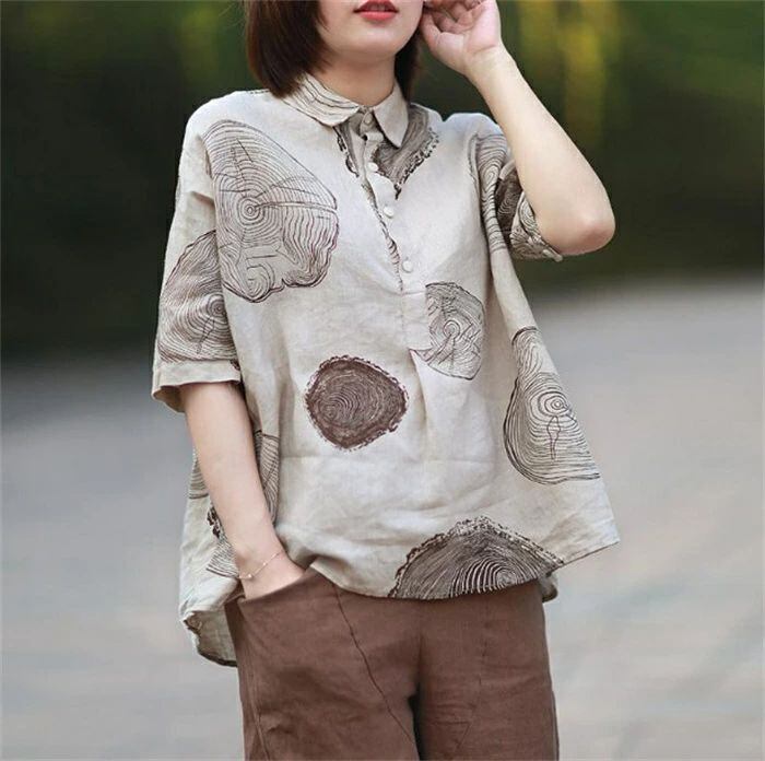 シャツ ブラウス 半袖 レディース 綿麻調 コットンリネン シャツブラウス トップス 春 夏 シャツ リネン コットン 綿麻 シャツ 大人 可愛い ナチュラル 森ガール 夏 トップス キレイめ カジュアル 大きいサイズ ゆったり 折り襟 通勤 通学 送料無料 カジュアル オフィス ナチュラル 定番 可愛い