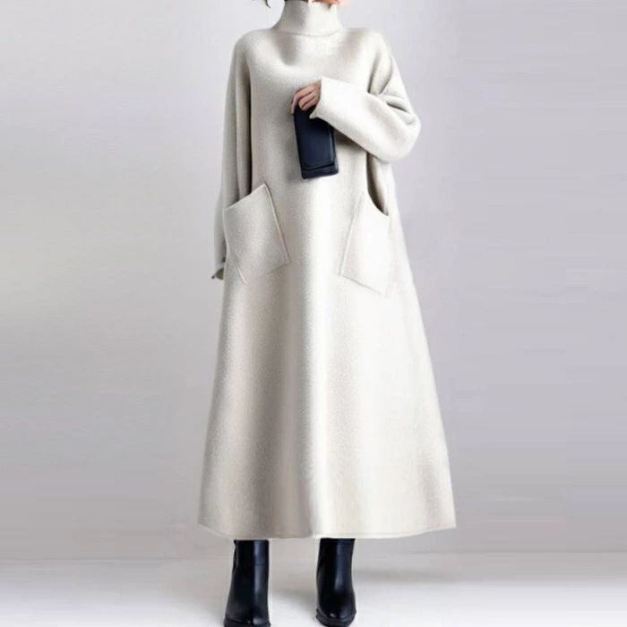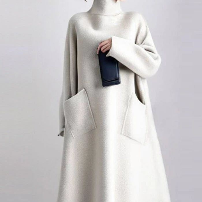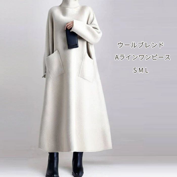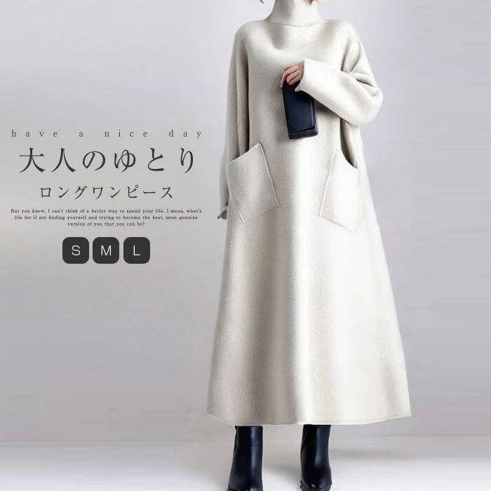 ワンピース ロング レディース ロング ワンピース ワンピ ロング丈 ハイネック タートルネック aライン Aライン 無地 秋 冬 長袖 体型カバー 大きいサイズ シンプル ゆったり きれいめ お洒落 ガーリー カジュアル 通勤 リラックス 着痩せ 上品 ホワイト 白 送料無料