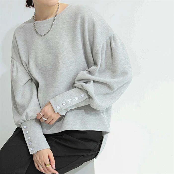 即納 tシャツ トレーナー レディース トップス 長袖 きれいめ ボリューム袖 プルオーバー カットソー ビッグ ゆる ぽわん袖 バルーン袖 チ