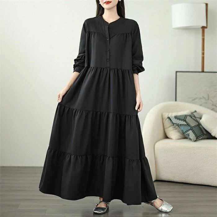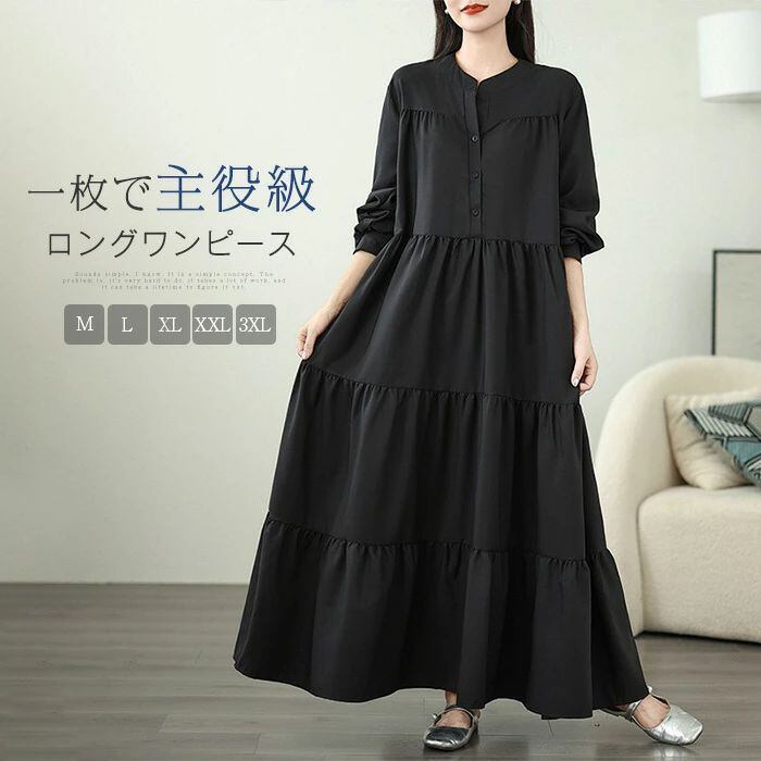ワンピース ロング ワンピース ティアード ワンピース レディース 長袖 ワンピース ロング丈 マキシ ワンピ 大人 可愛い カジュアル 春 秋 ロング丈 ギャザー マキシ ワンピ Aライン 切り替え デザイン 体型カバー きれいめ 大きいサイズ ゆったり 体型カバー 無地 お洒落 無地 送料無料 カジュアル エレガント お洒落 可愛い 20代 30代 40代 50代
