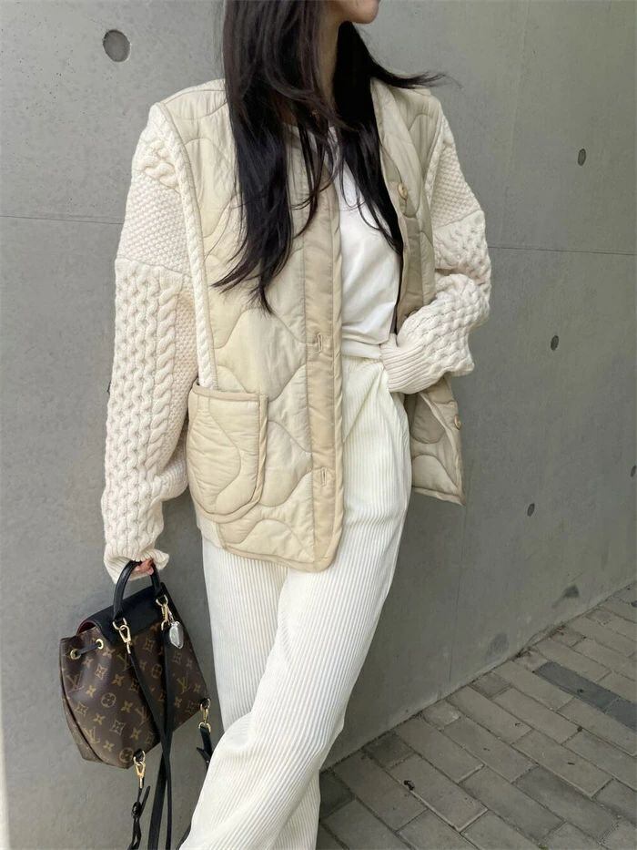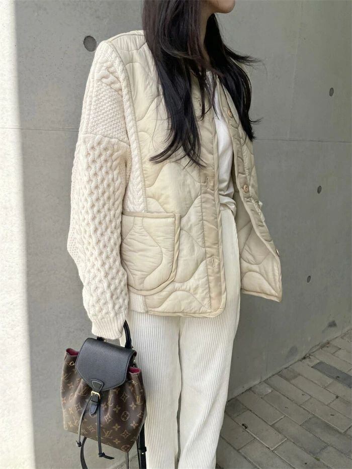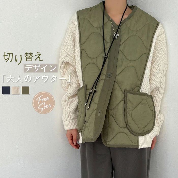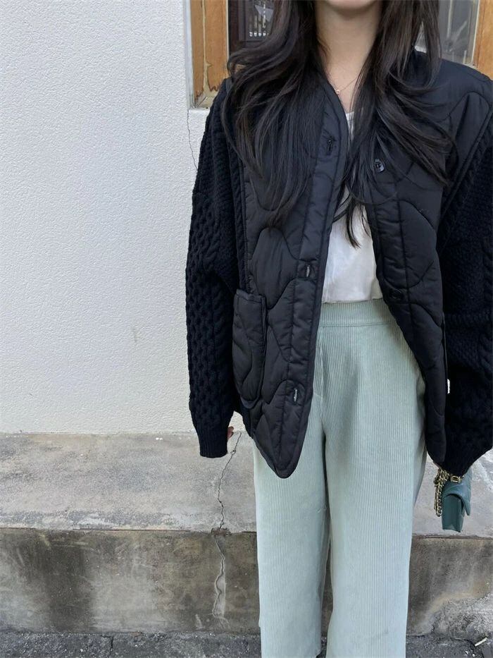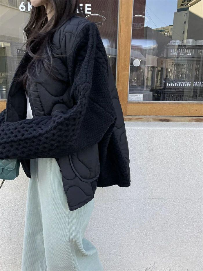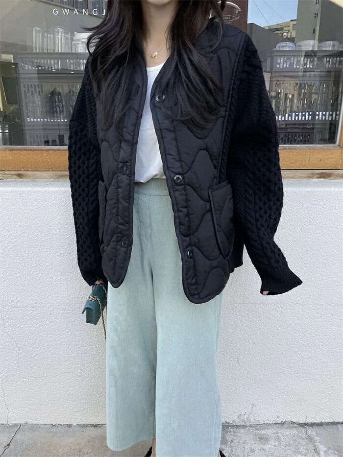 中綿 ジャケット ニット カーディガン 中綿 コート レディース ニット 切り替え アウター トップス 秋 秋冬 ゆったり 大きいサイズ 前開き