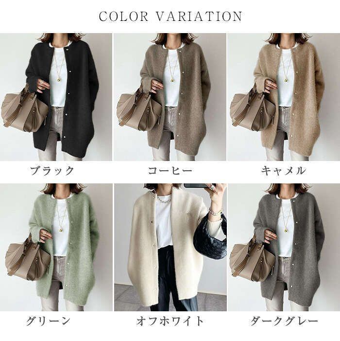 コート ニット アウター 秋冬 トップス ミディアム丈 カーディガン レディース ニットカーデ ノーカラー カジュアル風 長袖 シンプル 無地 ゆったり 防寒 きれい オシャレ 冬 冬服 冬物 新作 新着 秋冬 コーデ 御尻隠れる 秋 冬 20代 30代 40代 50代 送料無料