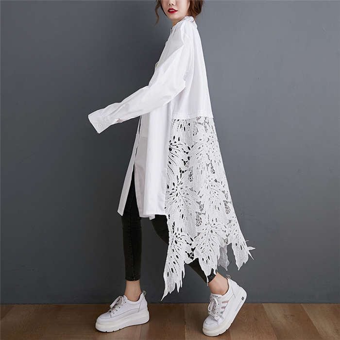 シャツワンピース レディース 秋 トップス ロングシャツ レース ゆったり 長袖 チュニック プリント 体型カバー 不規則 大きいサイズ 着痩せ 大人 秋 通勤 上品 白 黒 ホワイト ブラック 大きいサイズ 長袖ワンピース カジュアル おしゃれ 森ガール お洒落 上品 大人 20代 30代 40代 50代 送料無料